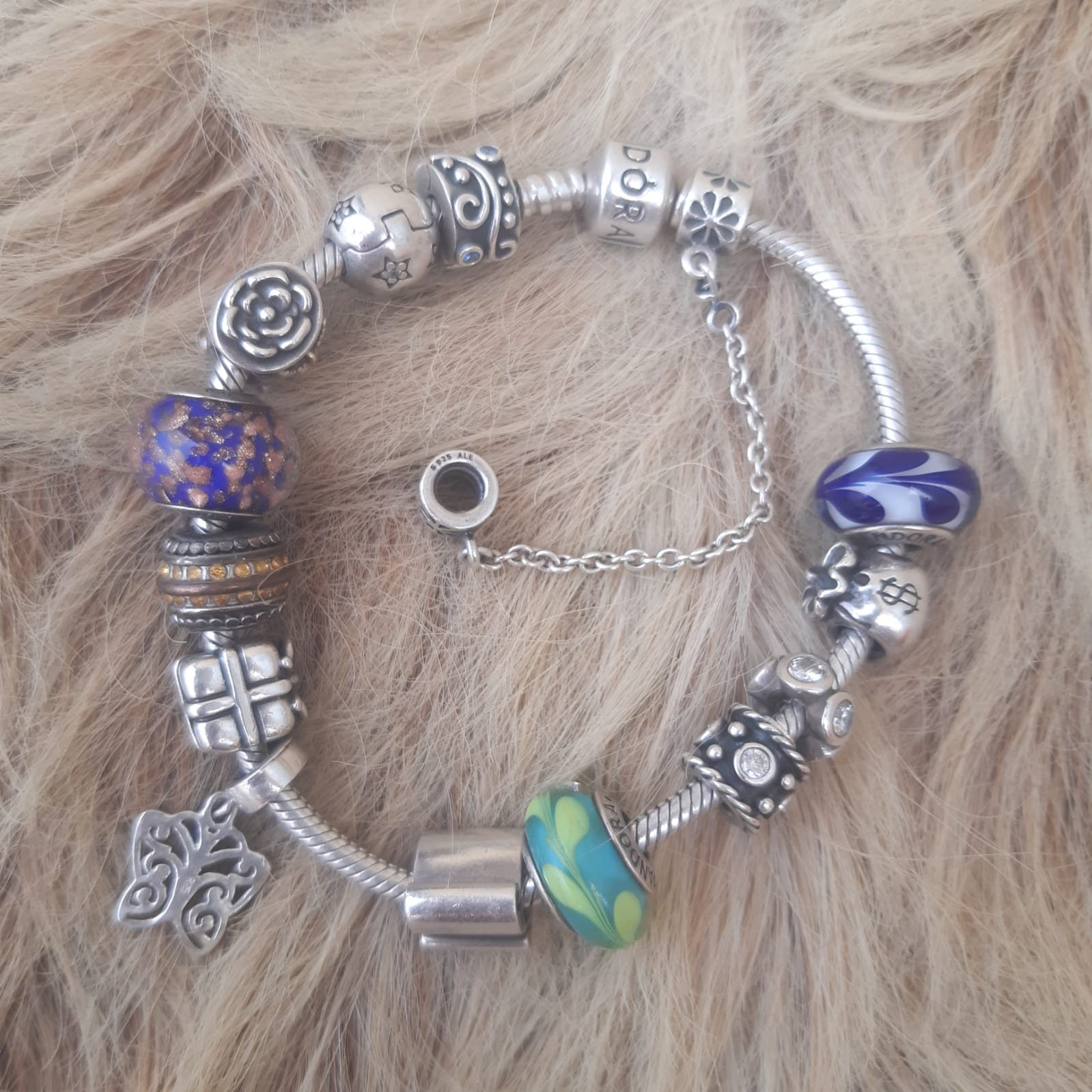 Bracciale Pandora Sterling Silver da donna con 15 perline firmato, Perline con ciondoli Pandora da d...