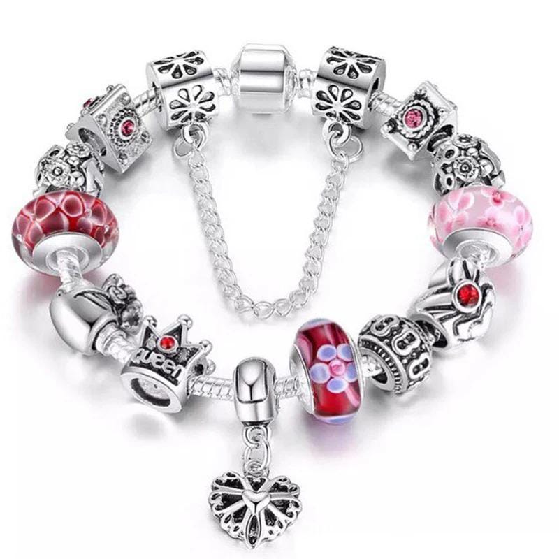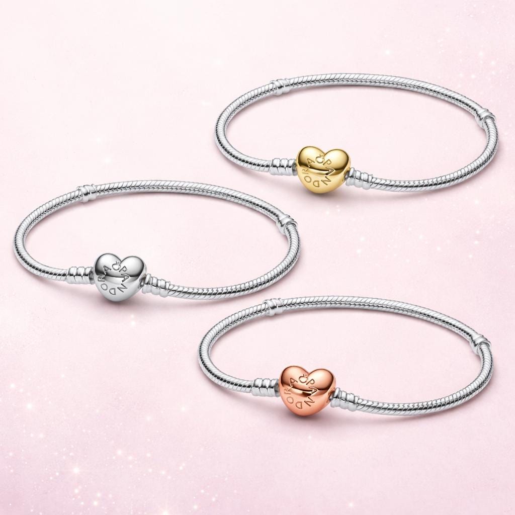 Bracciale Pandora a catena a serpente, bracciale con charm, argento...