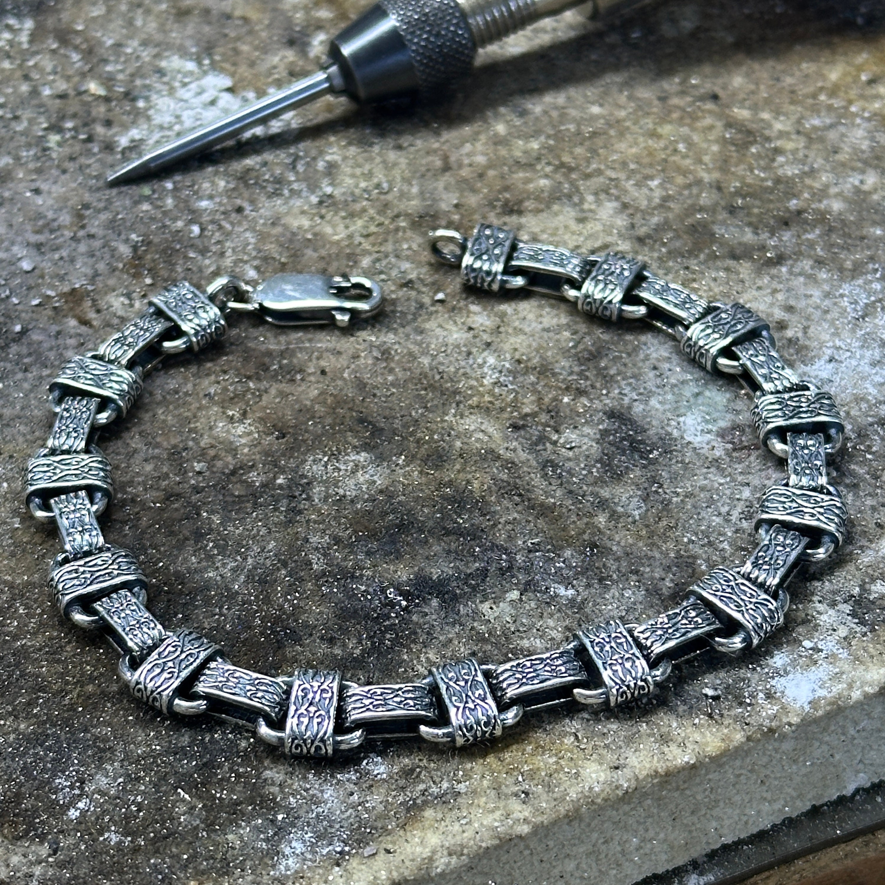 Bracciale a catena in argento, bracciale a catena norrena, bracciale a catena in argento inciso a ma...