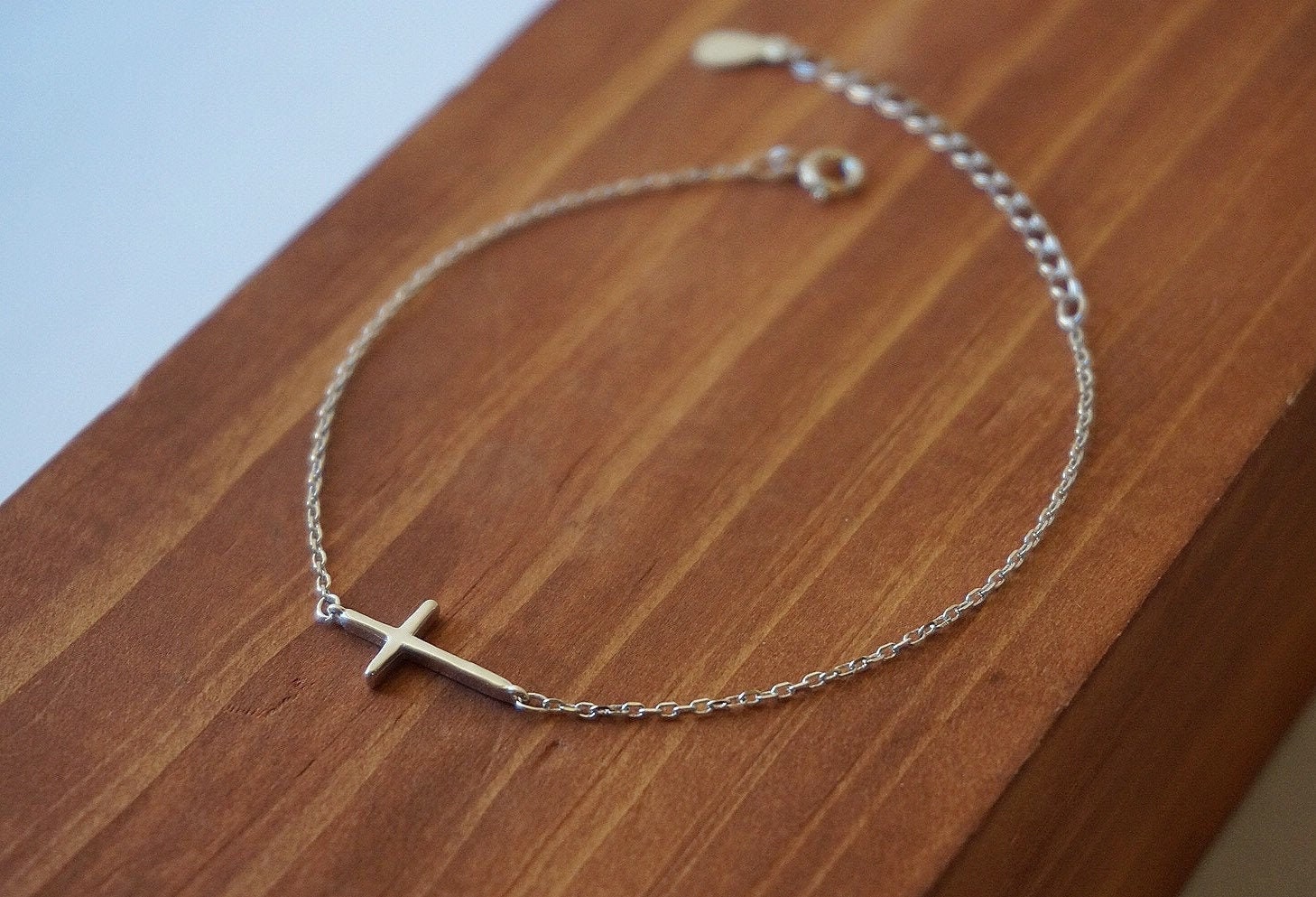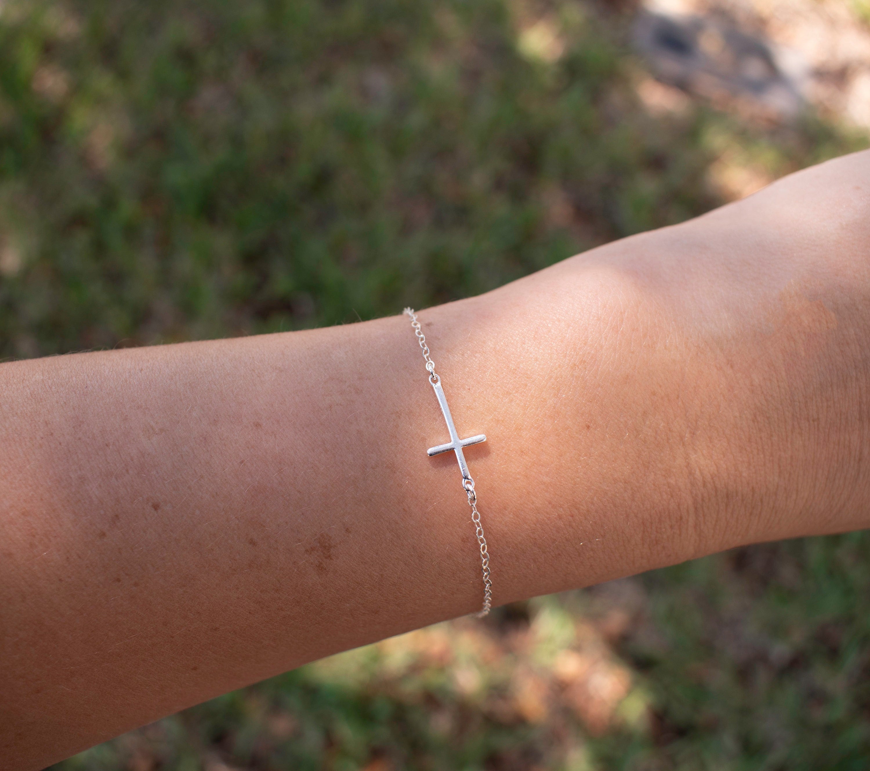 Braccialetto a croce laterale in argento, croce laterale, croce lat...