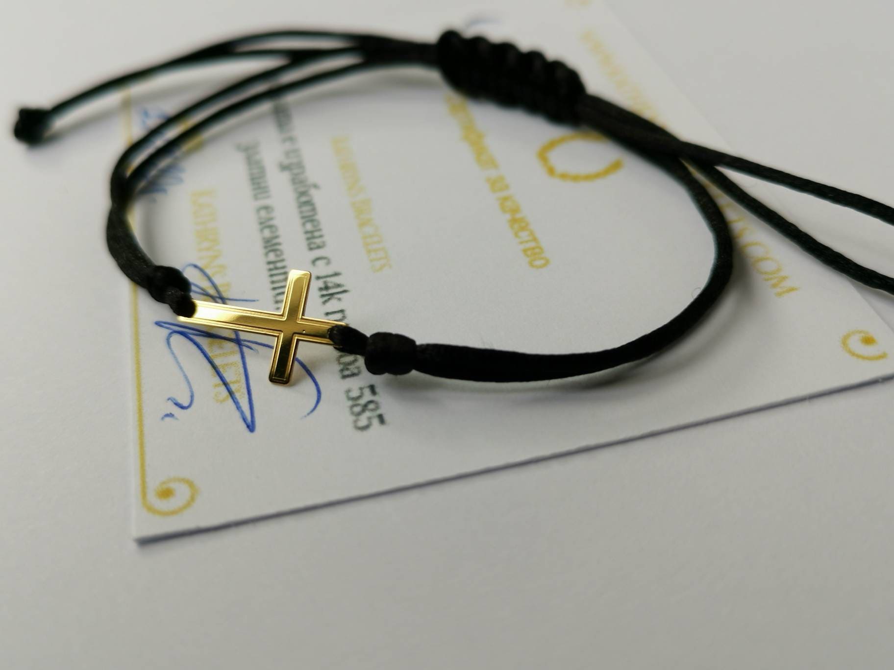 Bracciale a croce in oro giallo massiccio 14k. Croce in filo nero e...