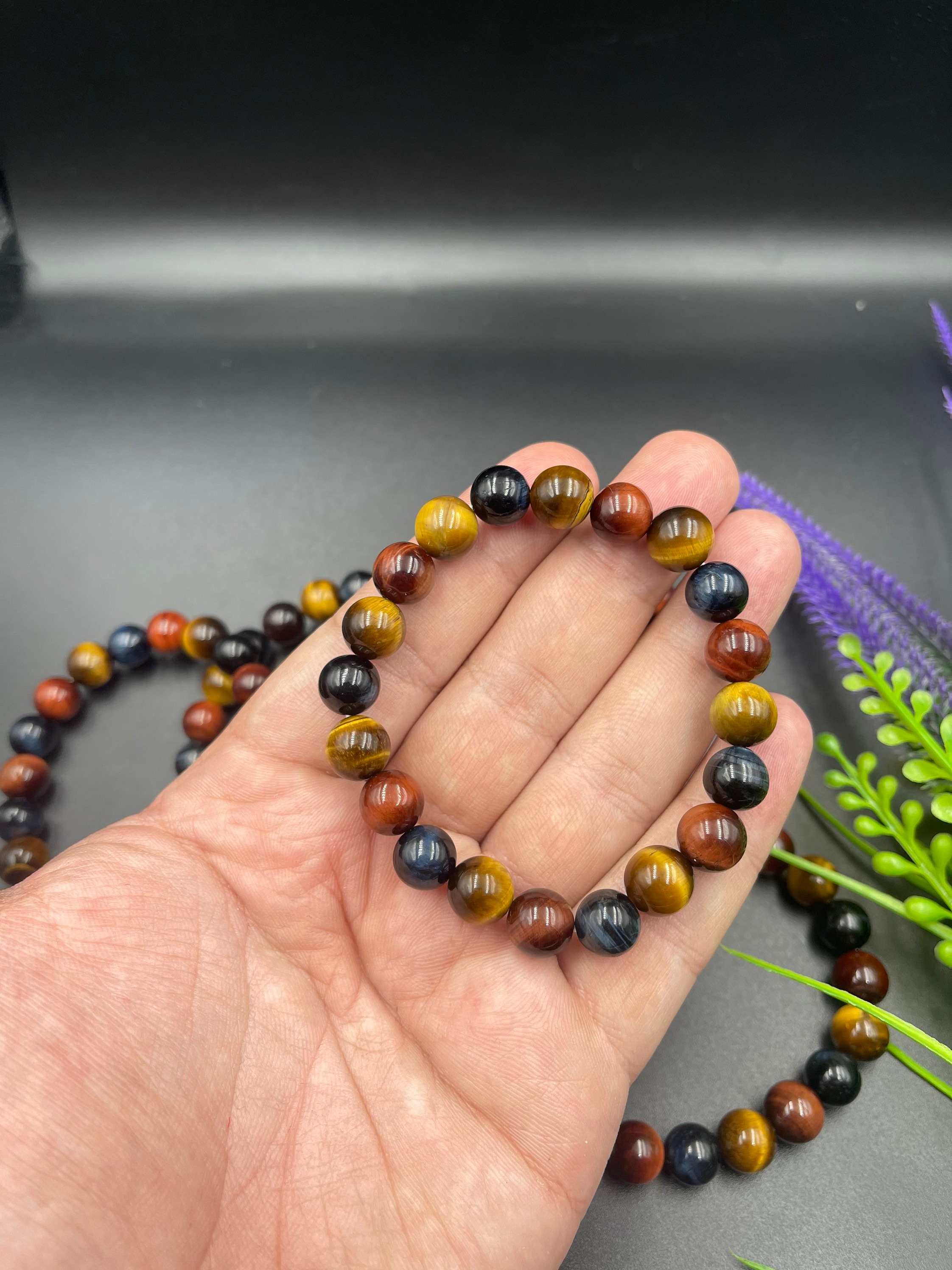 Mix Blue Yellow Red Tiger Eye Bracciale con perline di alta qualit&...