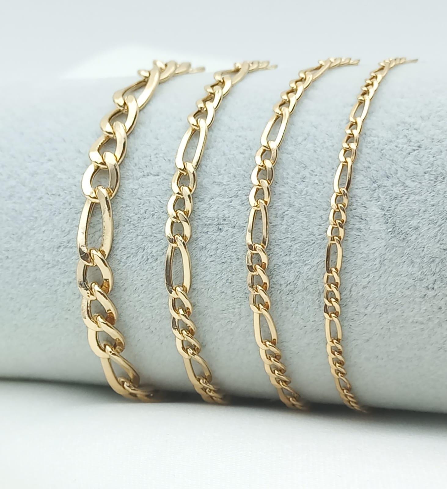 Bracciale Figaro in oro 14 carati, Bracciale Figaro in oro, Catena ...