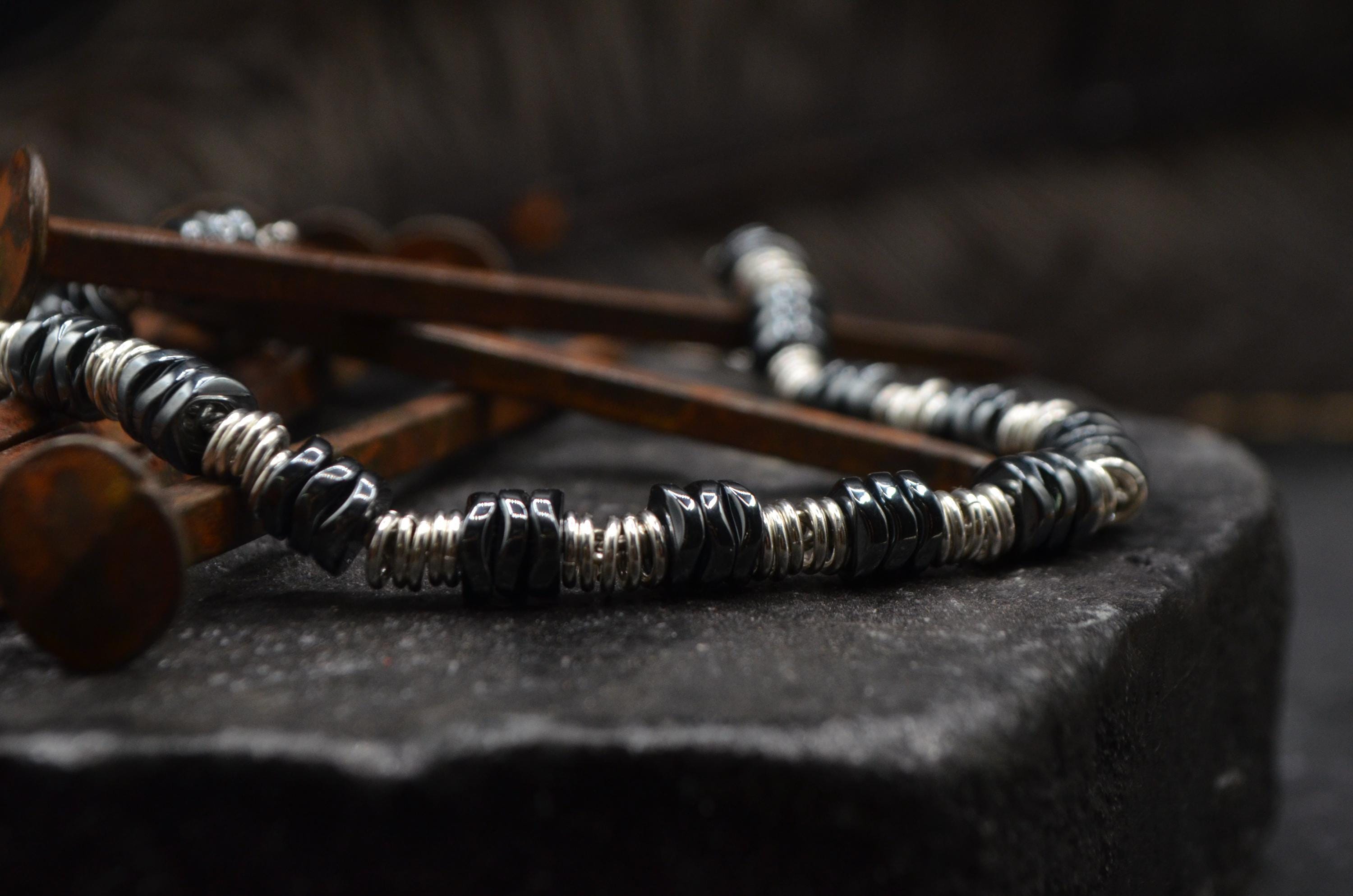 Bracciale ematite, bracciale argento 925, bracciale di pietra, brac...