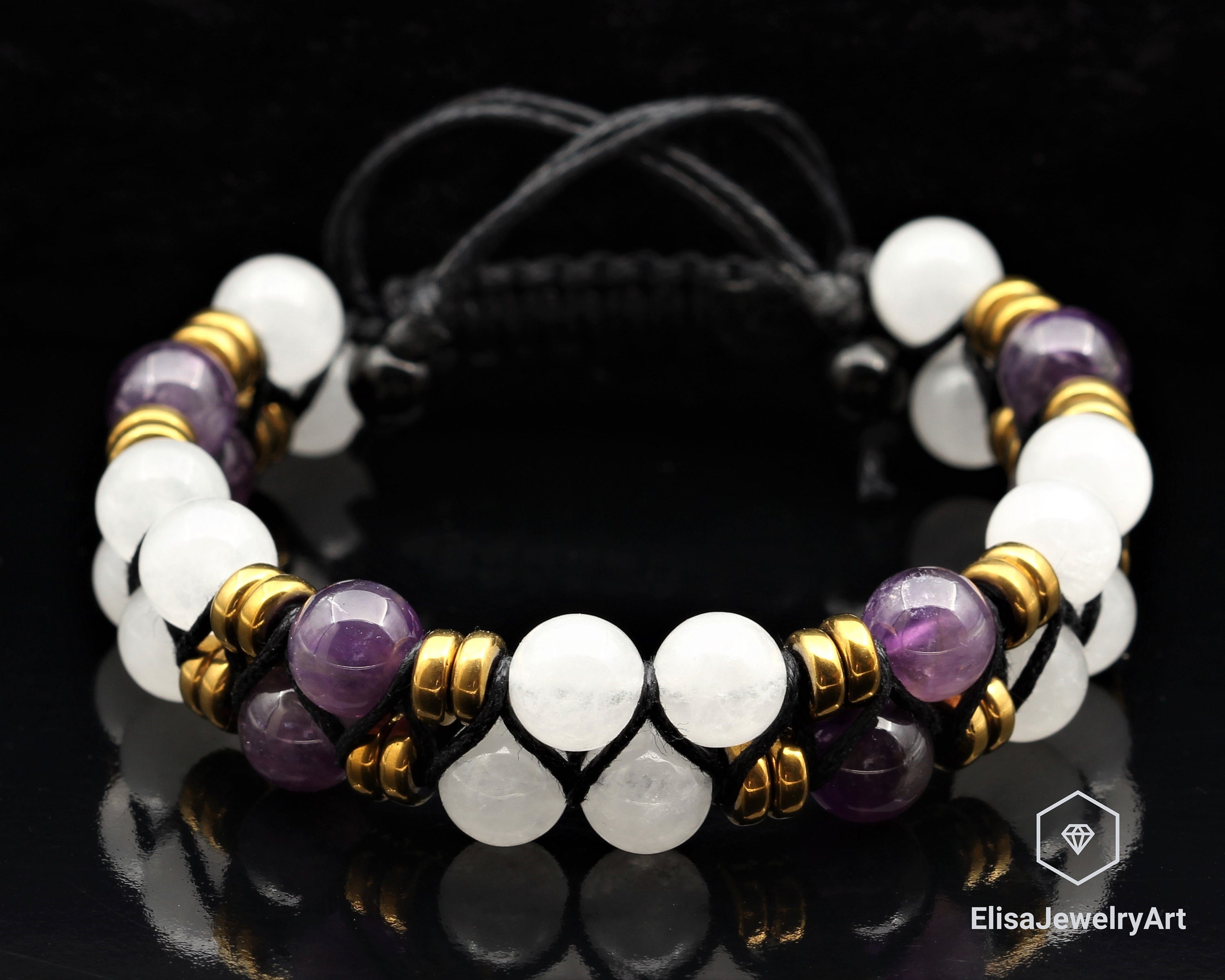 "Guarigione Naturale Selenite, Ametista Macrame Doppia Fila Braccialetto Regolabile Regalo Per ...