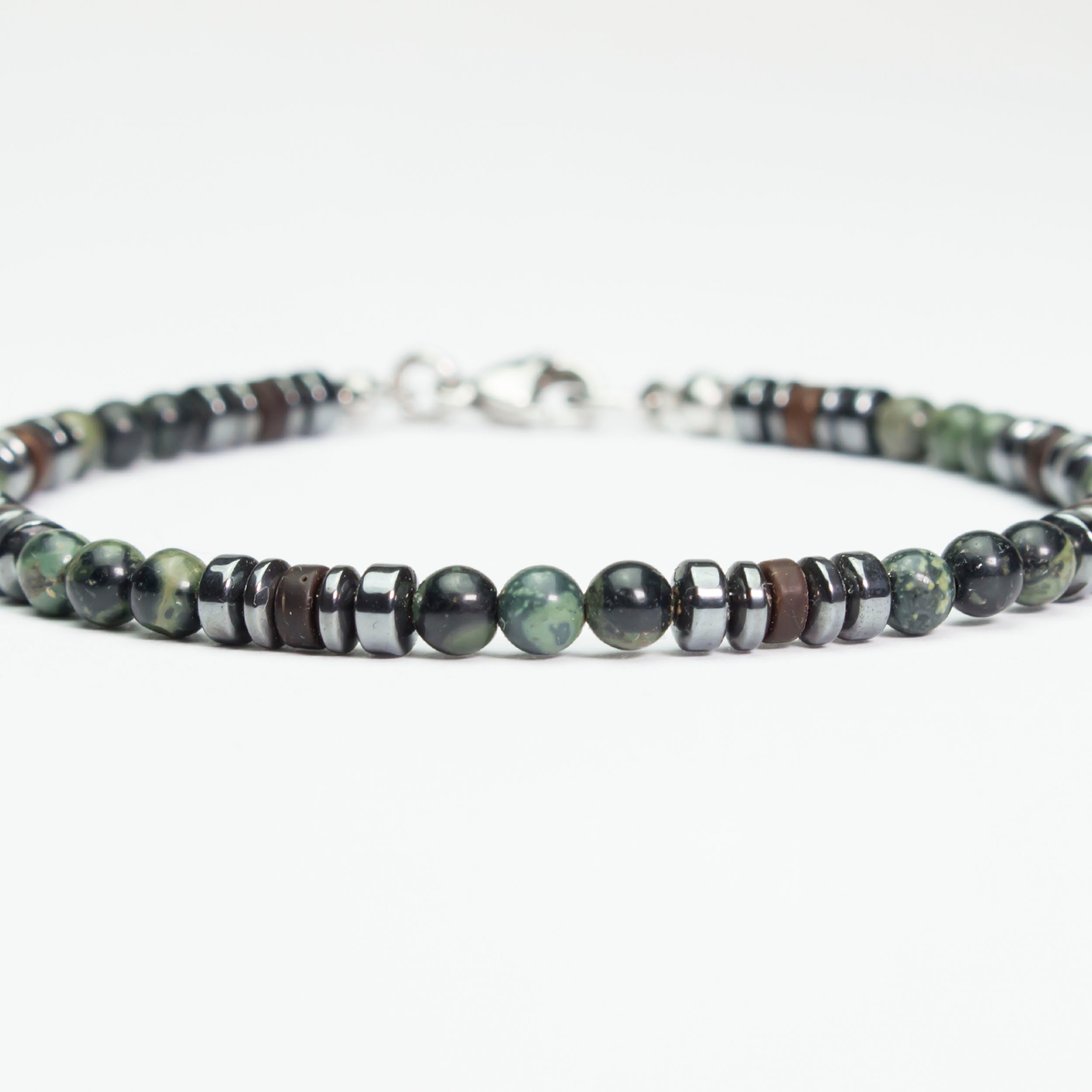 Nuovo BRACCIALE Uomo/Donna Perline 4mm Pietre Naturali Diaspro Verd...