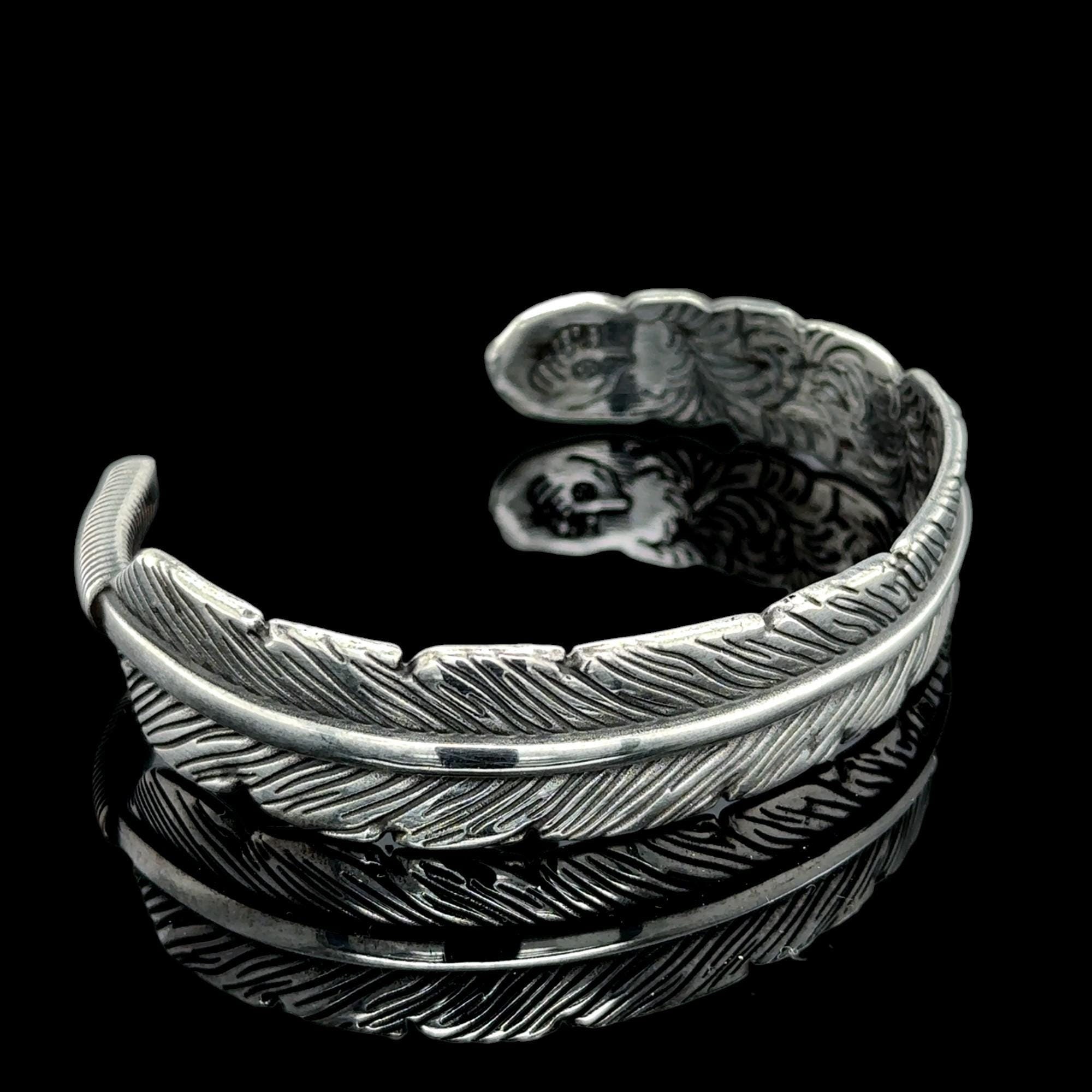 Bracciale con piume in argento, bracciale regolabile da uomo in arg...