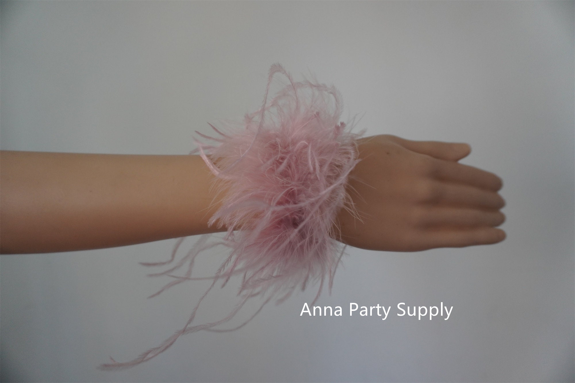 Braccialetti con piume rosa cipria Bracciale con polsino di piume c...