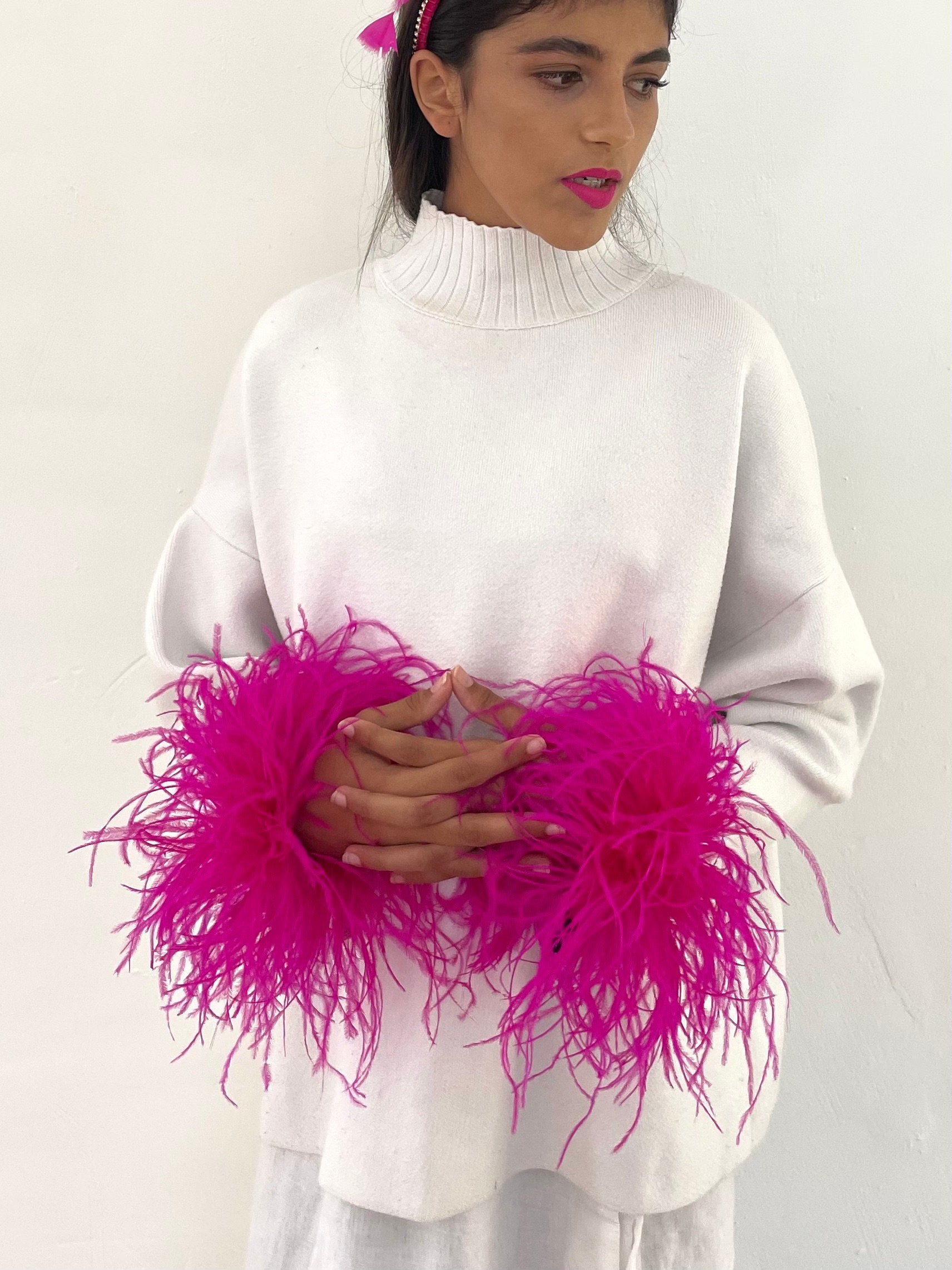 Braccialetti in vera piuma di struzzo color rosa magenta. Abbellisci i tuoi abiti antiquati con ques...
