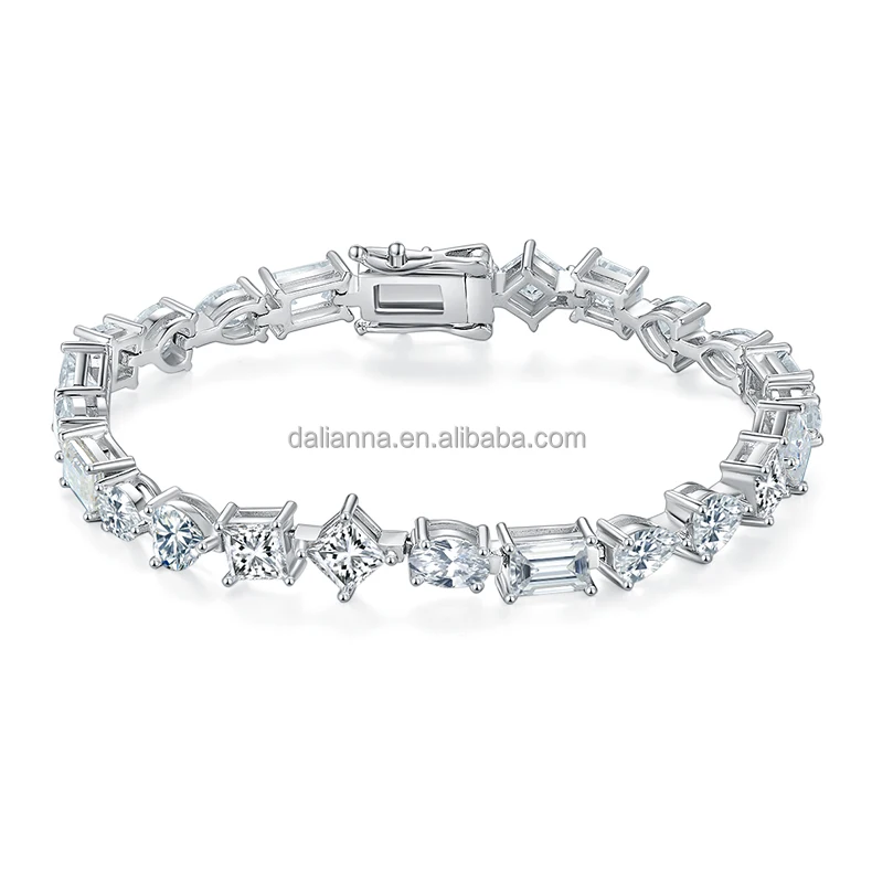 Bracciale tennis Diamonique Bezel Princess Cut CZ in vero argento S...
