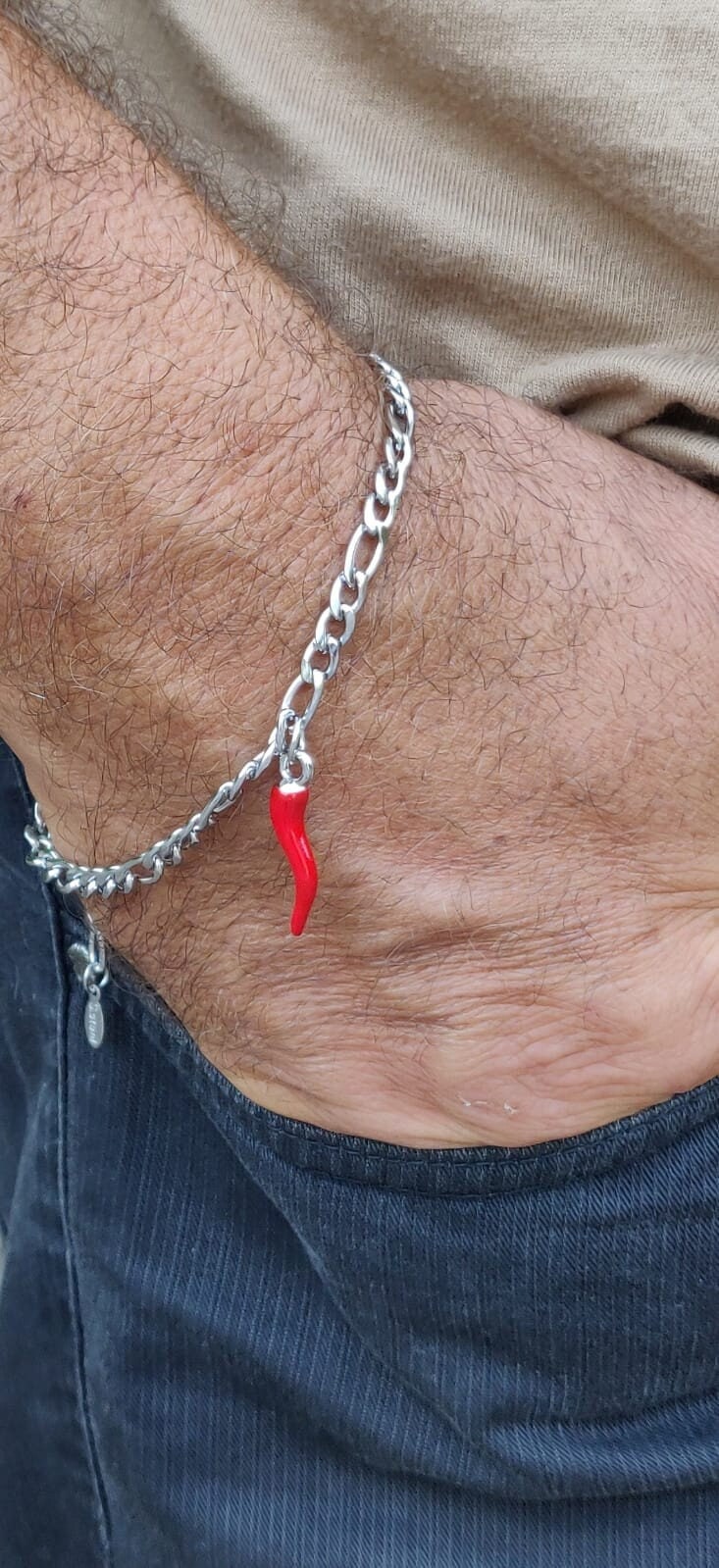 "Vintage 80s style Figaro link bracelet perfect for men and women. With the red enamel horn, kn...