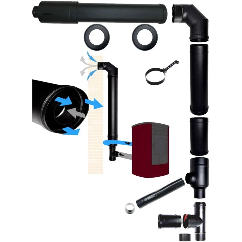 Kit Tubi Canna Fumaria Stufa Pellet Coassiale Dn 80 130 Scarico Fum...