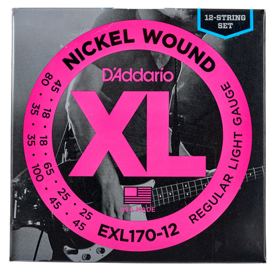 Daddario EXL170-12, Set di 12 corde per basso elettrico, Regular Light, Long Scale, Avvolgimento a s...