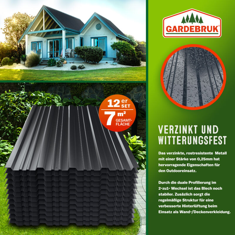 Deuba - Gardebruk 12x Lamiera Grecata 129x46cm = 7m² Lastra Zi...
