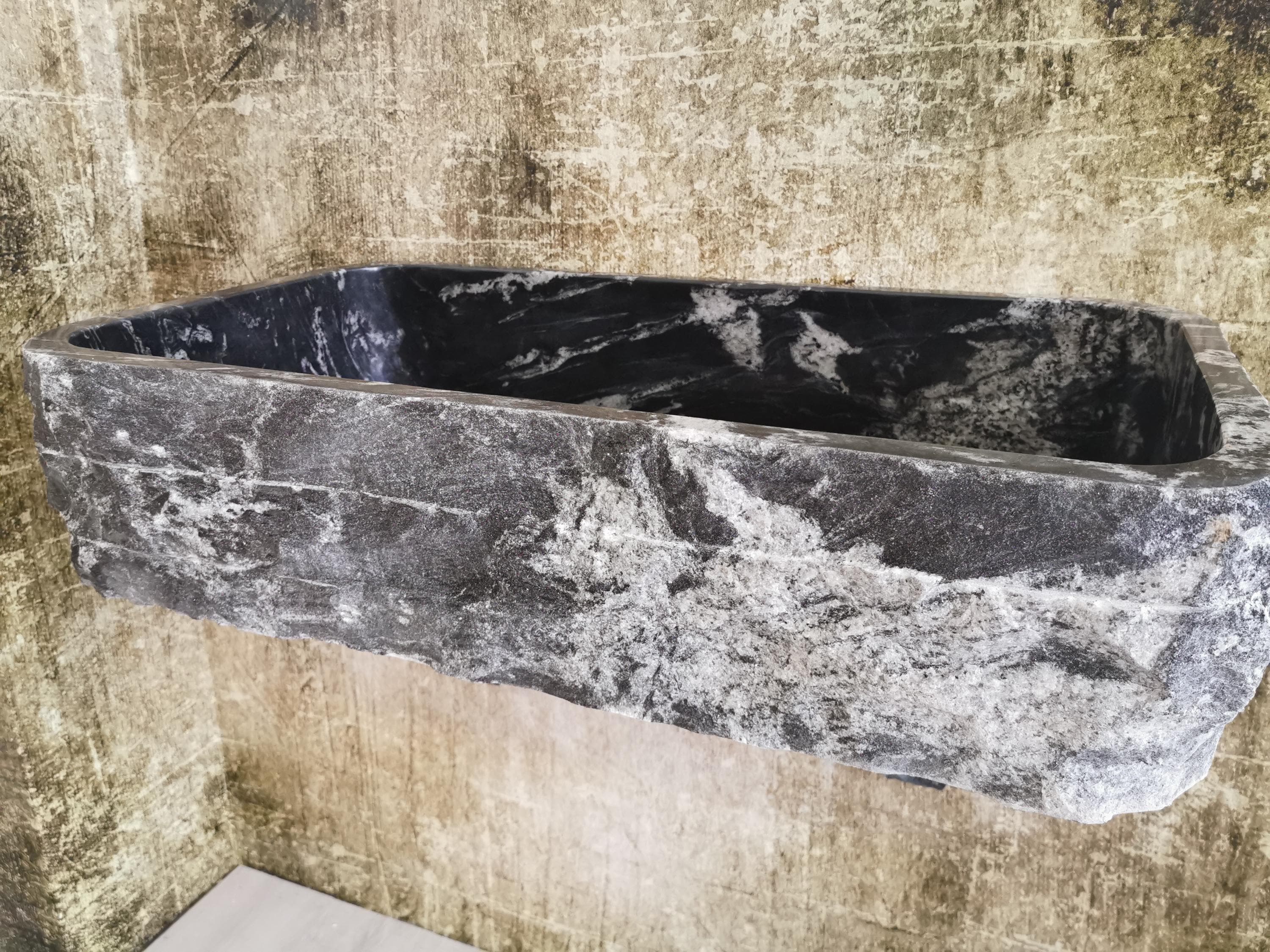 Lavello da cucina da appoggio in granito black misura 90x50x20cm-bl...