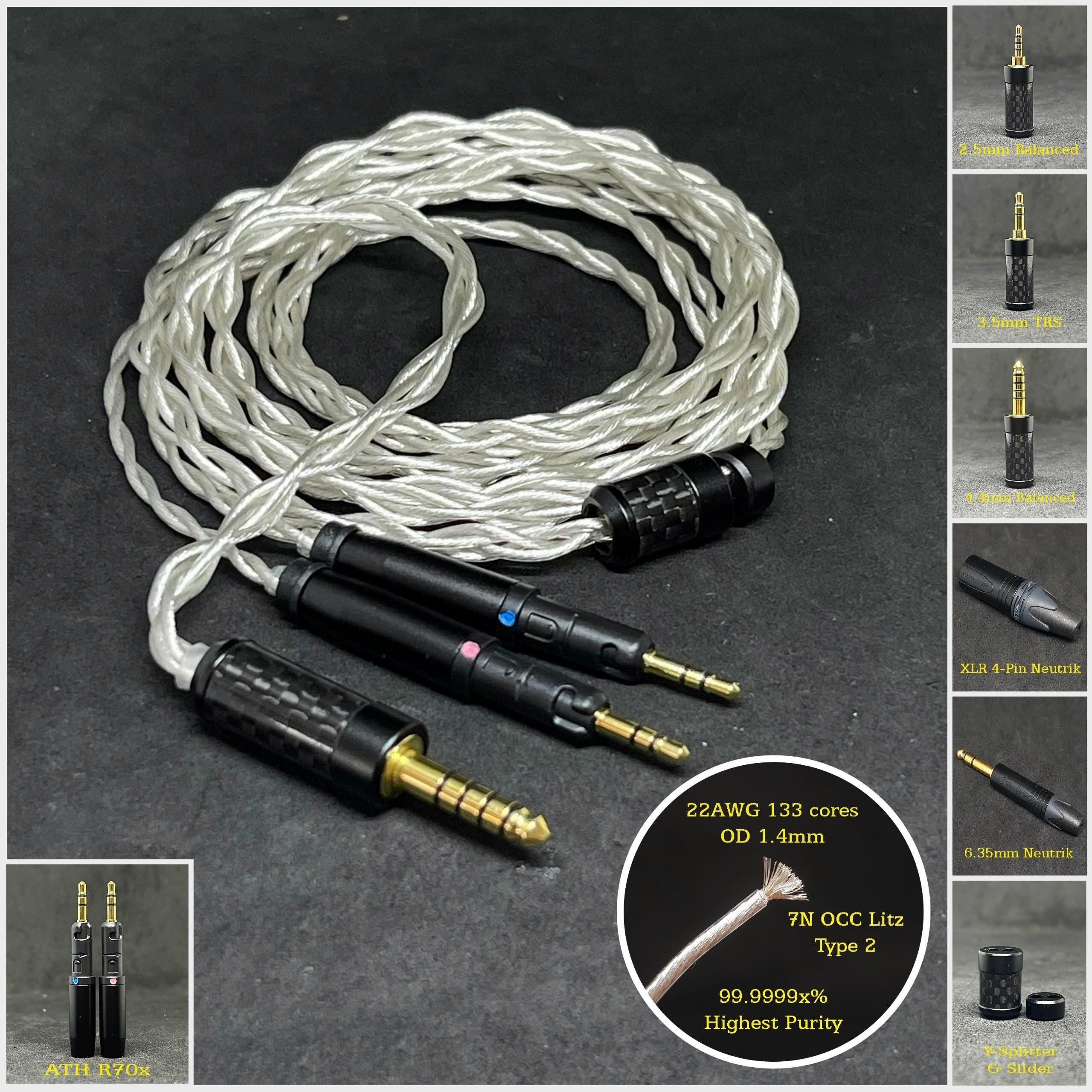 Cavo per ATH R70x Dual 2.5 mm -22AWG 7NOCC Rame placcato argento - ...