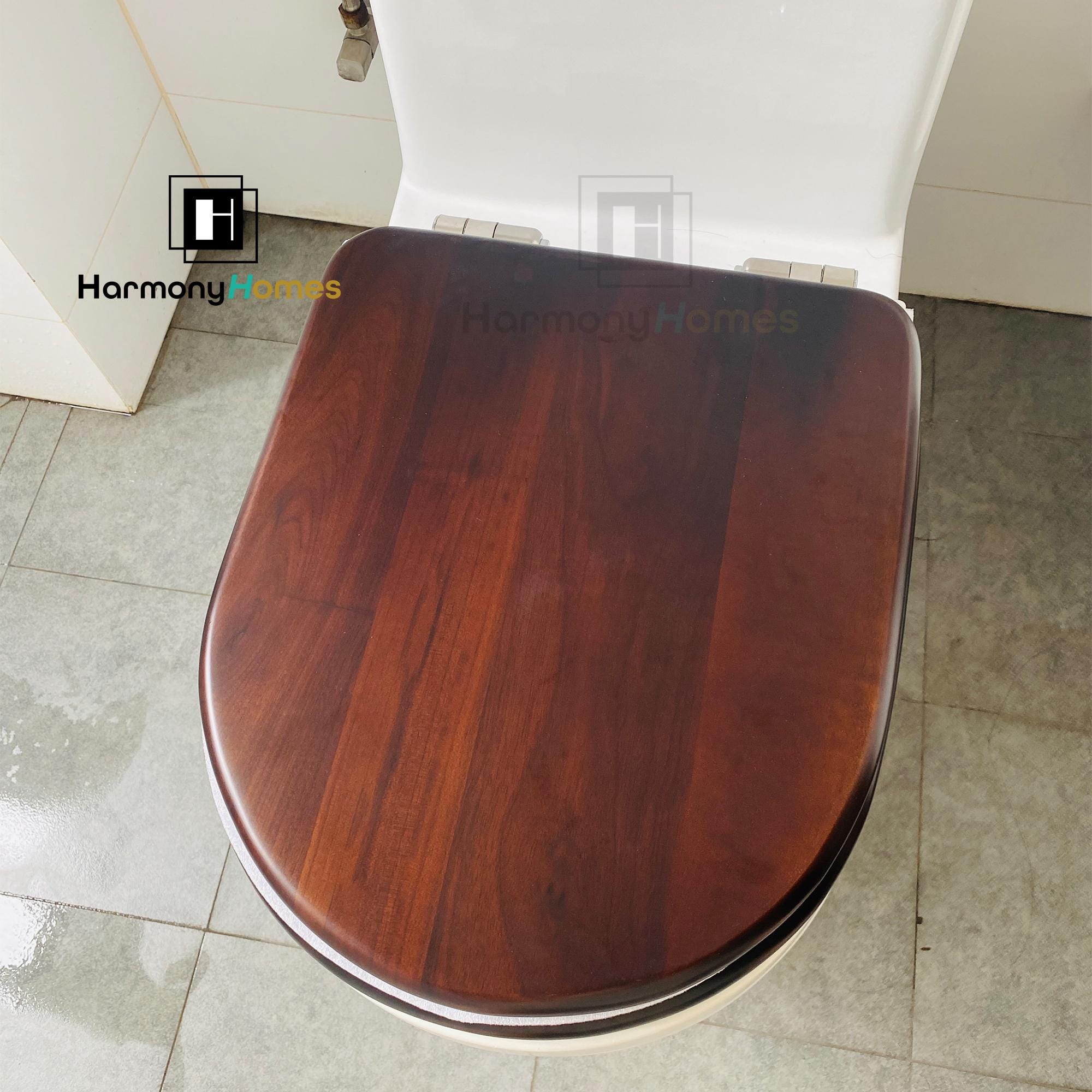Questo sedile WC in noce di alta qualità è realizzato in legno massello caldo ed elega...