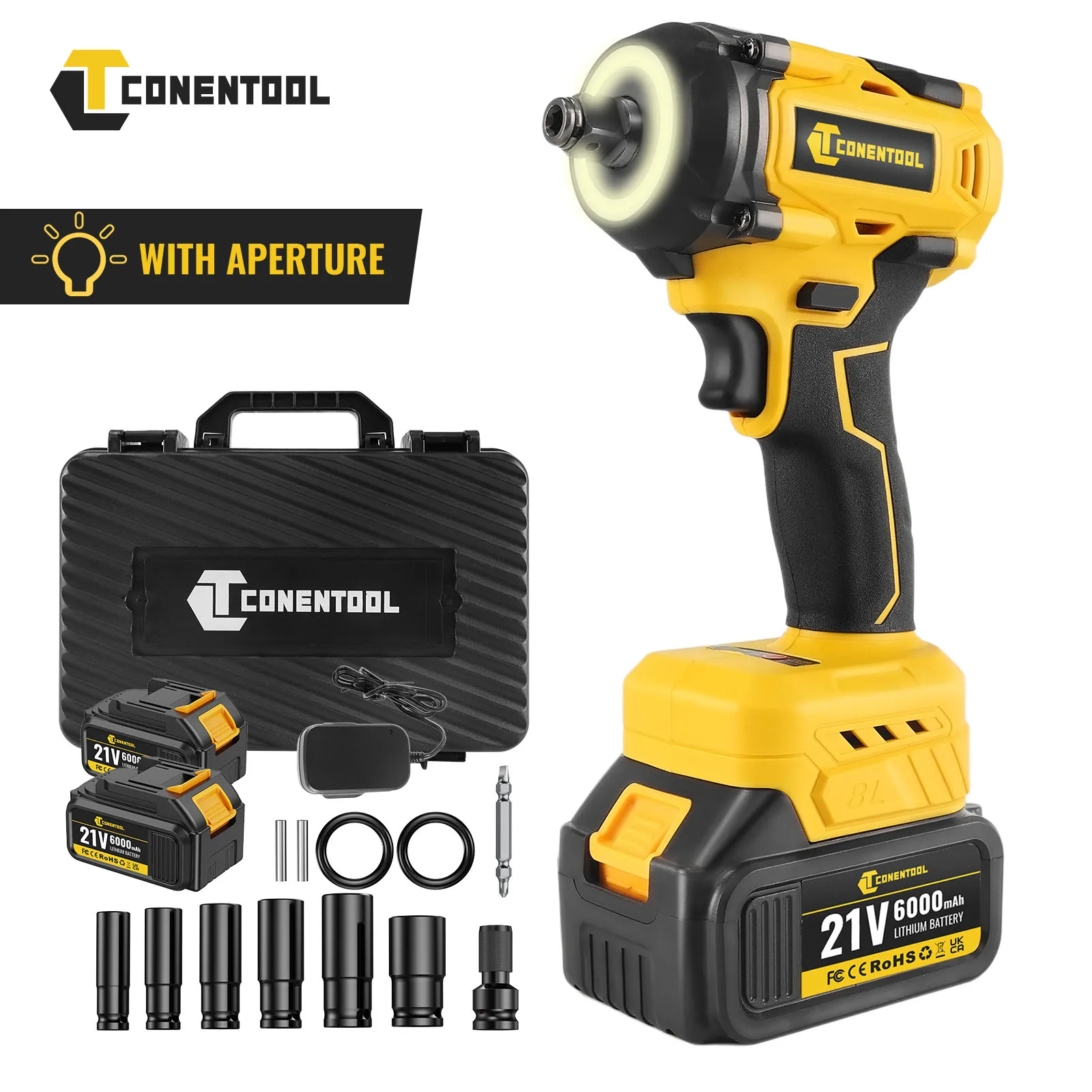 CONENTOOL Chiave elettrica senza spazzole 520N.m Chiave a percussione a batteria da 1/2 pollici con ...