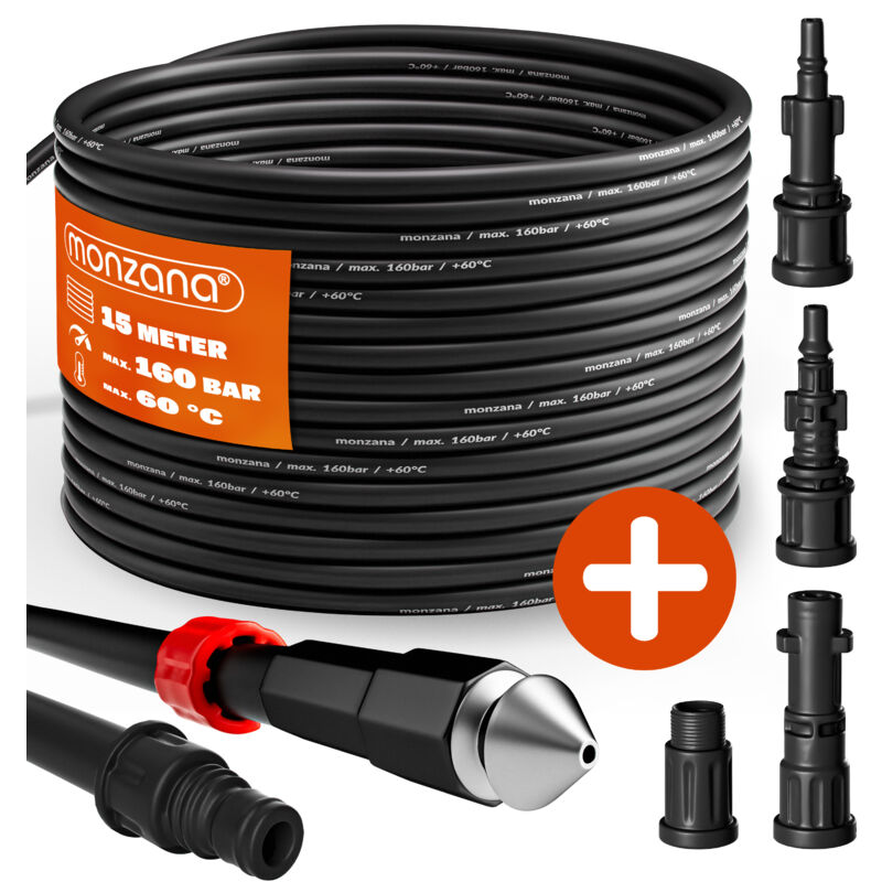 Deuba Sonda Spurgatubi Set 15m 4 Adattatori Per Idropulitrice Ad Al...