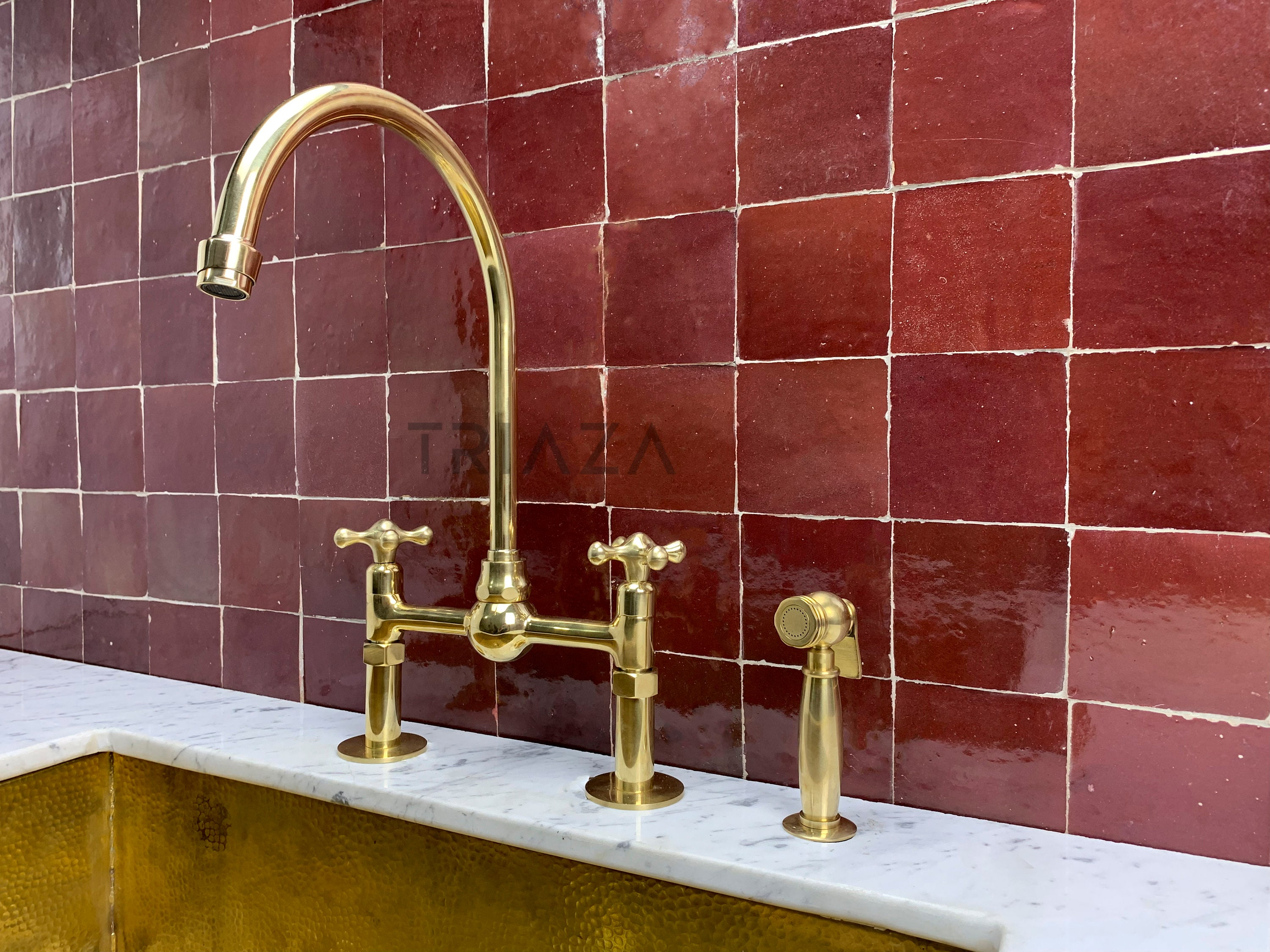 Rubinetto a ponte in ottone non laccato, rubinetto da cucina in ott...