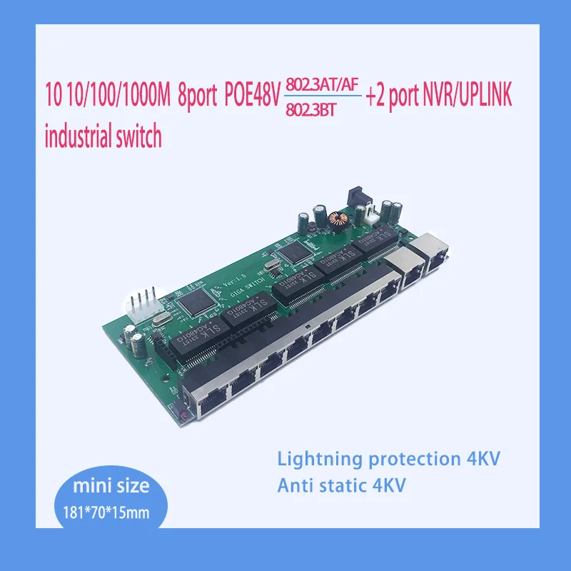 10 10/100/1000M 48V switch ethernet 8 switch poe 802.3AT/AF.8 switc...