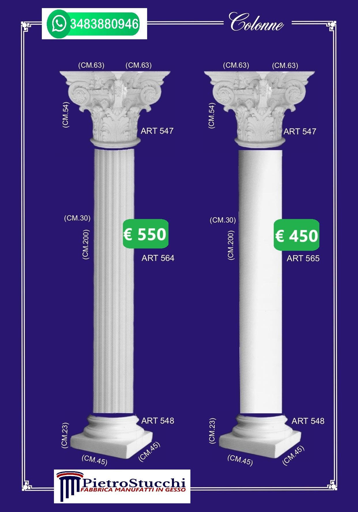 colonna semi colonna gesso cemento capitello dorico ionico corinzio...
