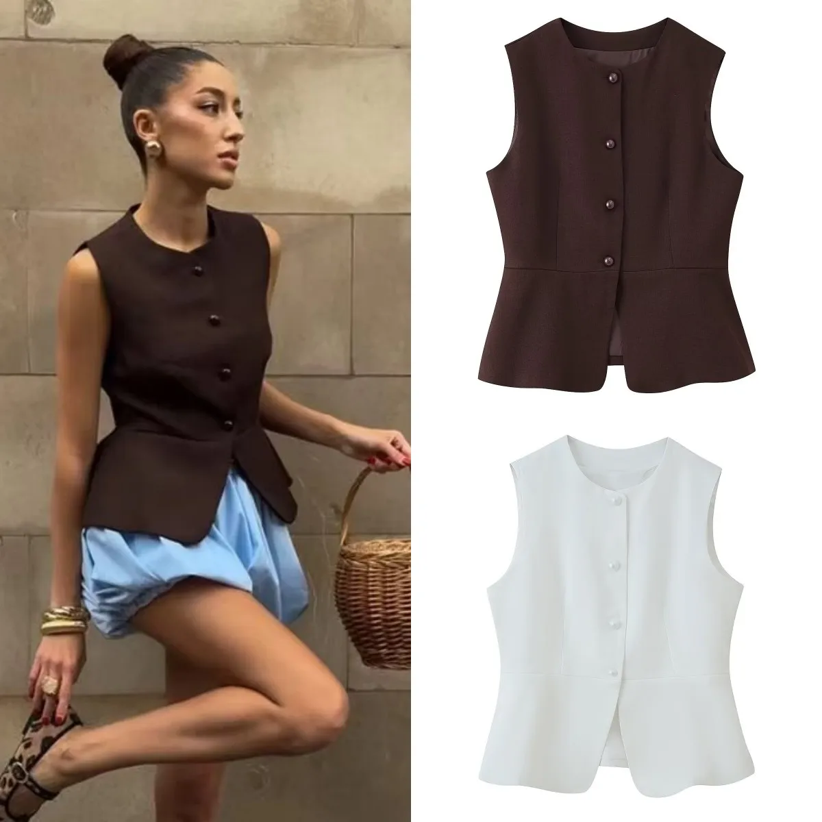 ETJ Autunno 2025 gilet da donna elegante moda tinta unita girocollo temperamento versatile gilet con...