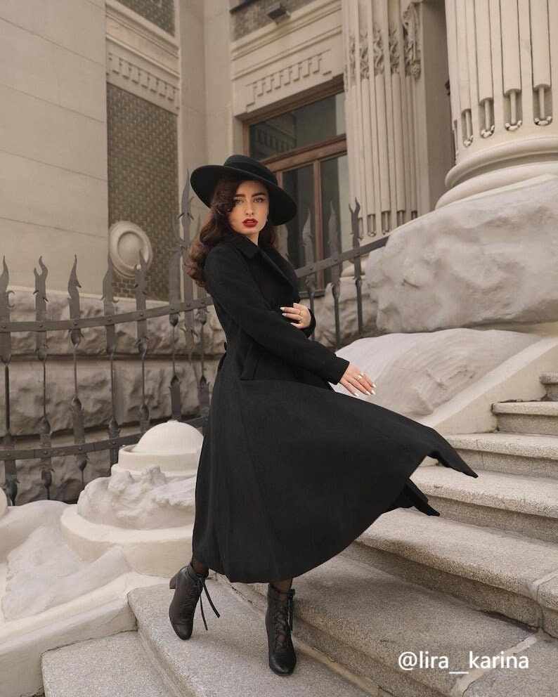Grazie per aver indossato il cappotto di lana nero di Xiaolizi da @lira_karina. Cappotto lungo in la...
