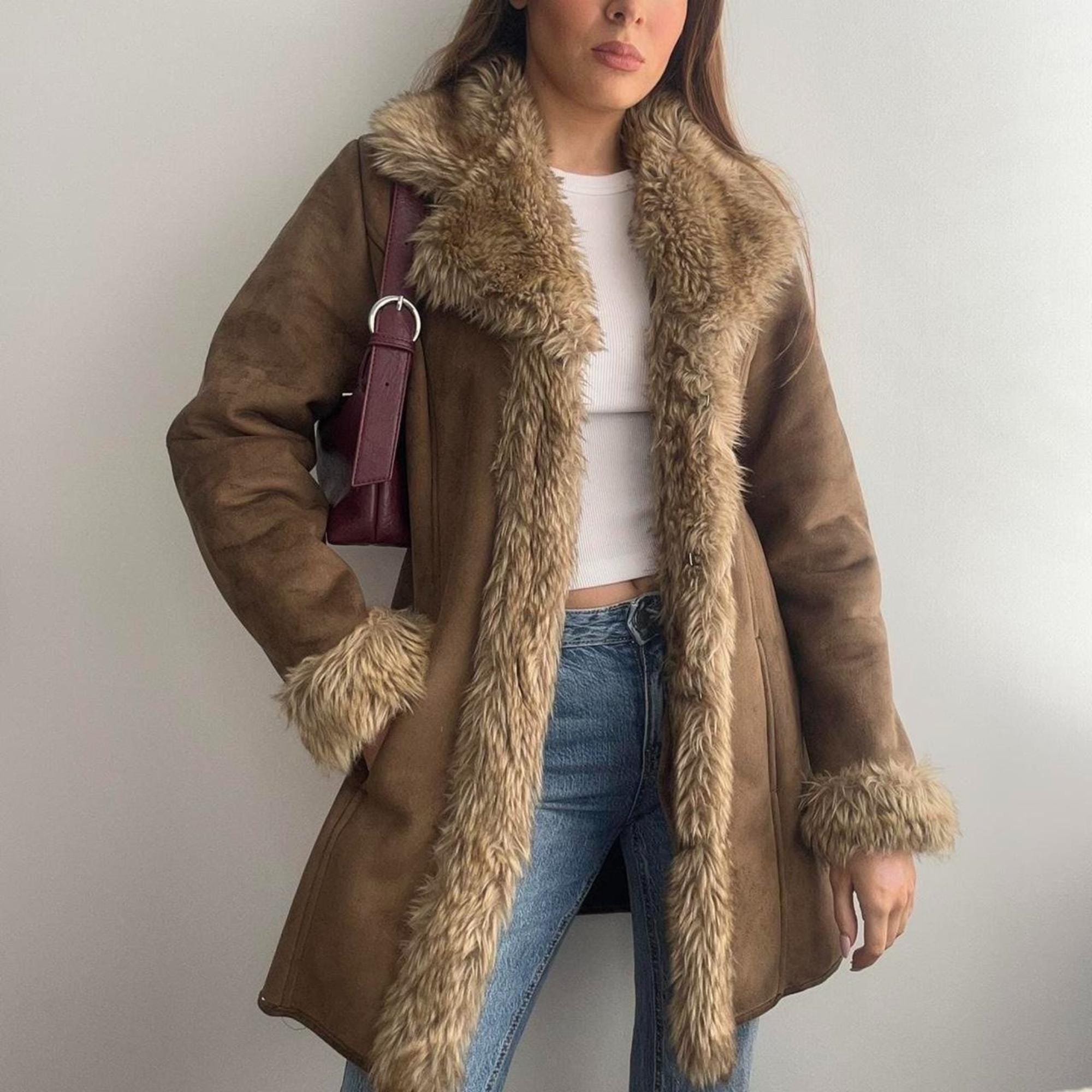 Cappotto vintage Penny Lane donna in pelle scamosciata marrone e mo...