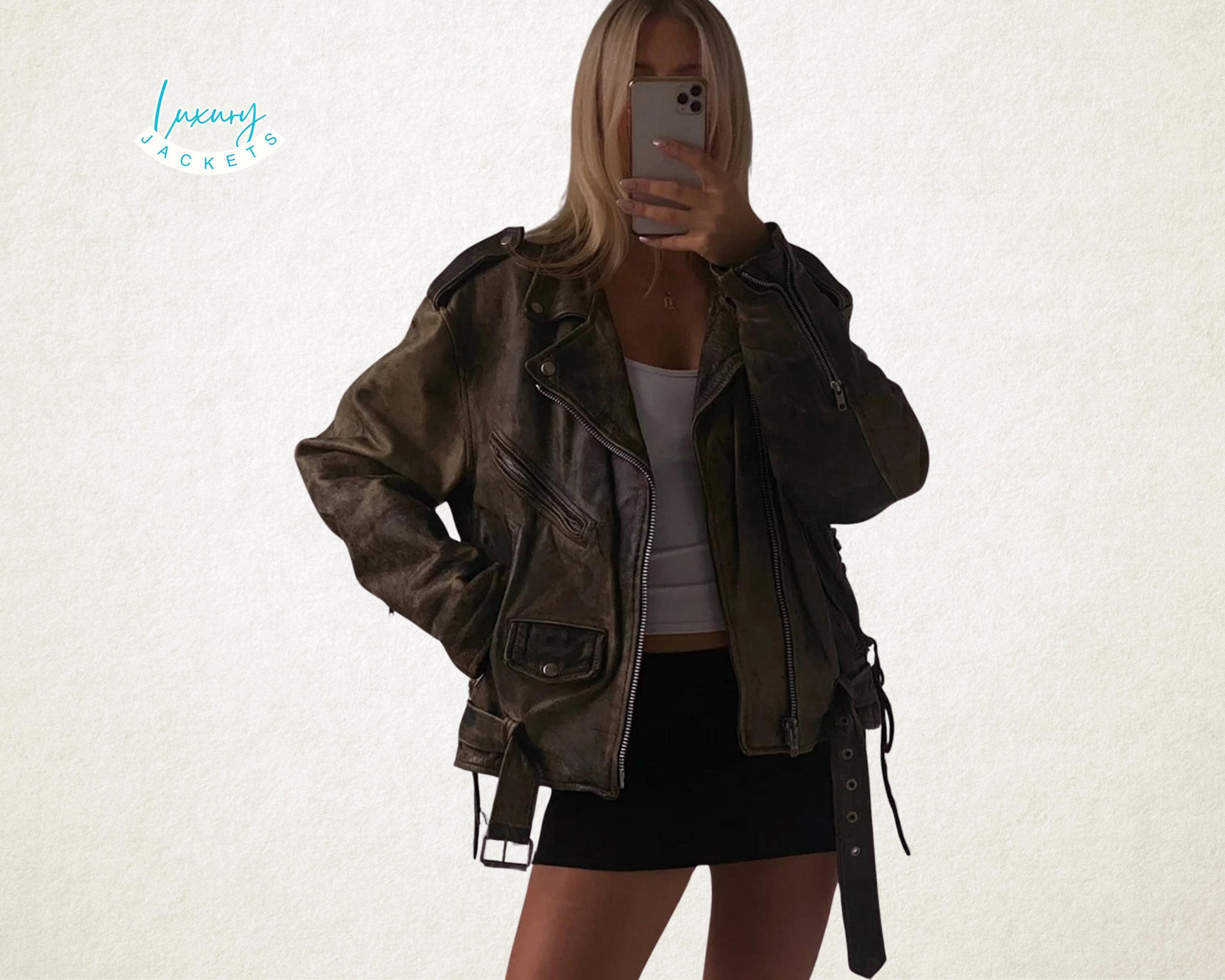 Giubbotto bomber vintage da donna Ultimate - Cappotto oversize in vera pelle marrone fatto a mano an...