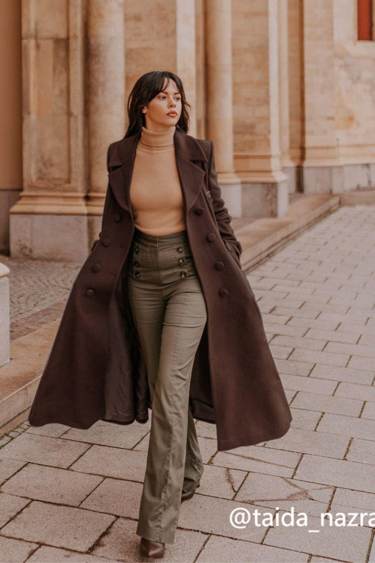 Cappotto lungo in lana di ispirazione vintage, cappotto invernale d...