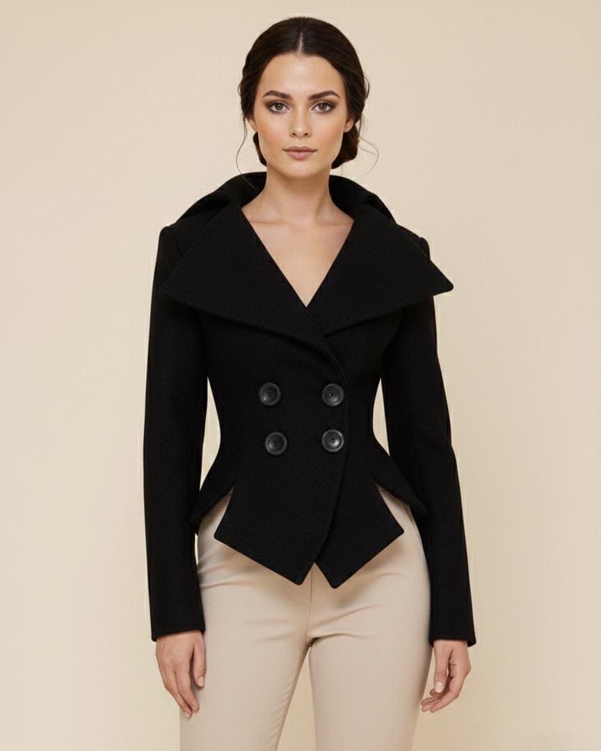 Scopri un'eleganza senza tempo con la nostra giacca sartoriale nera di lusso, realizzata in crê...
