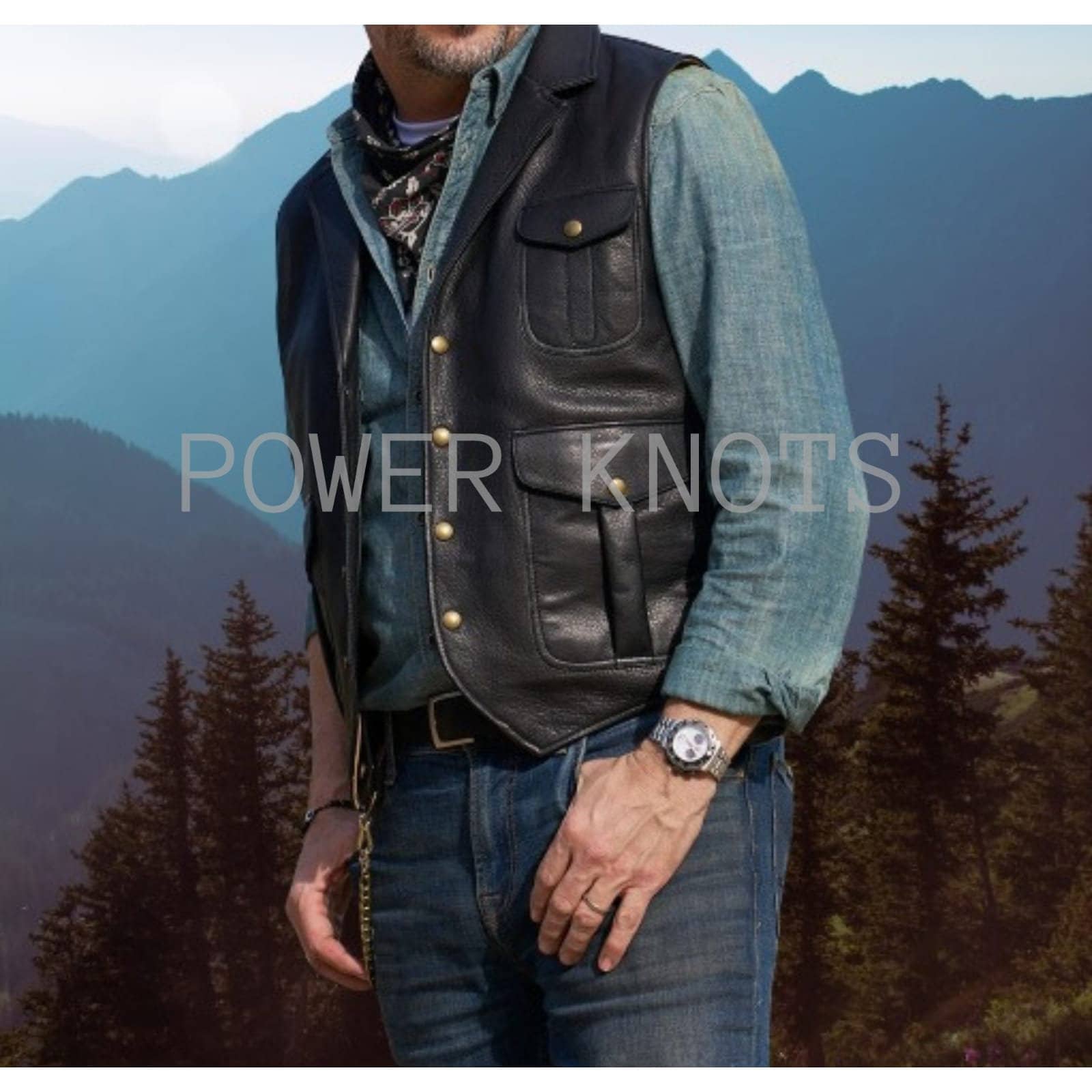 Gilet/gilet in pelle da cowboy nero vintage da uomo, gilet in pelle...