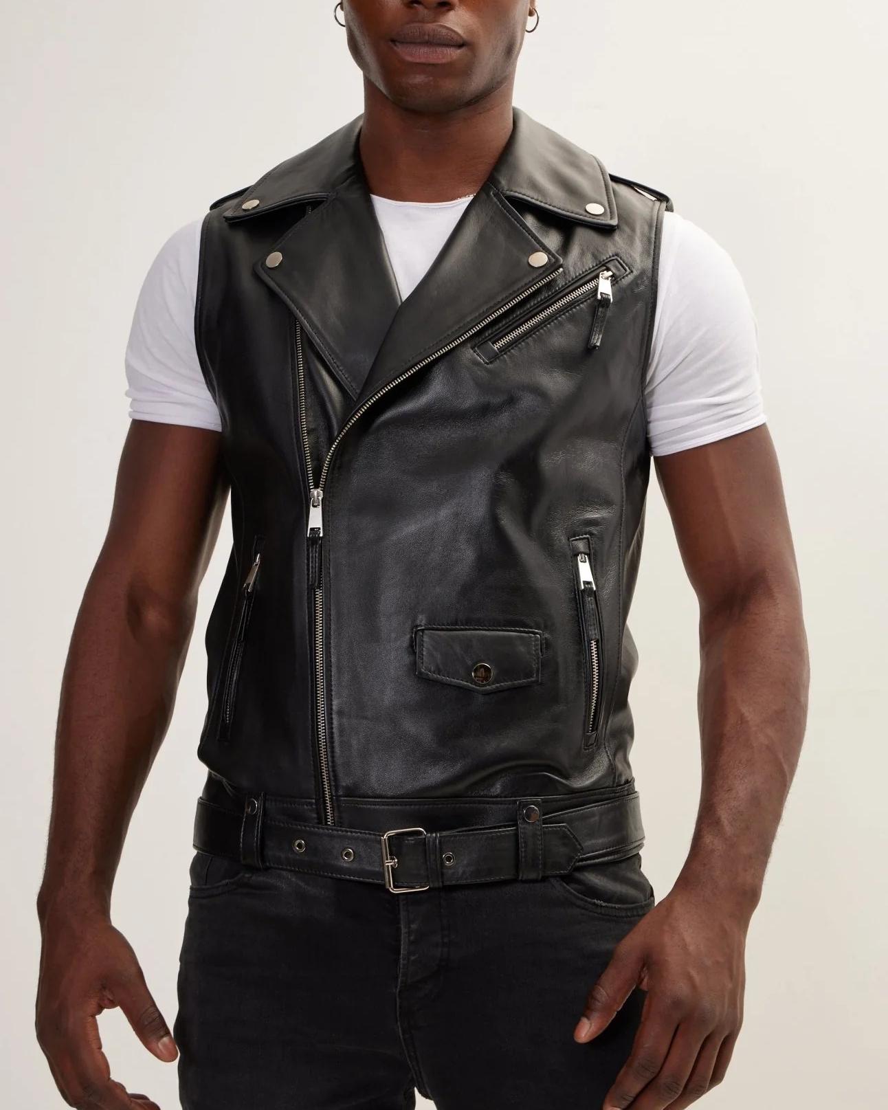 Gilet da motociclista in pelle nera fatto a mano da uomo, gilet da ...