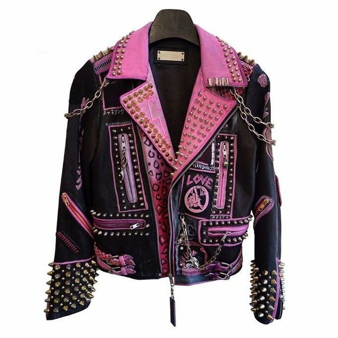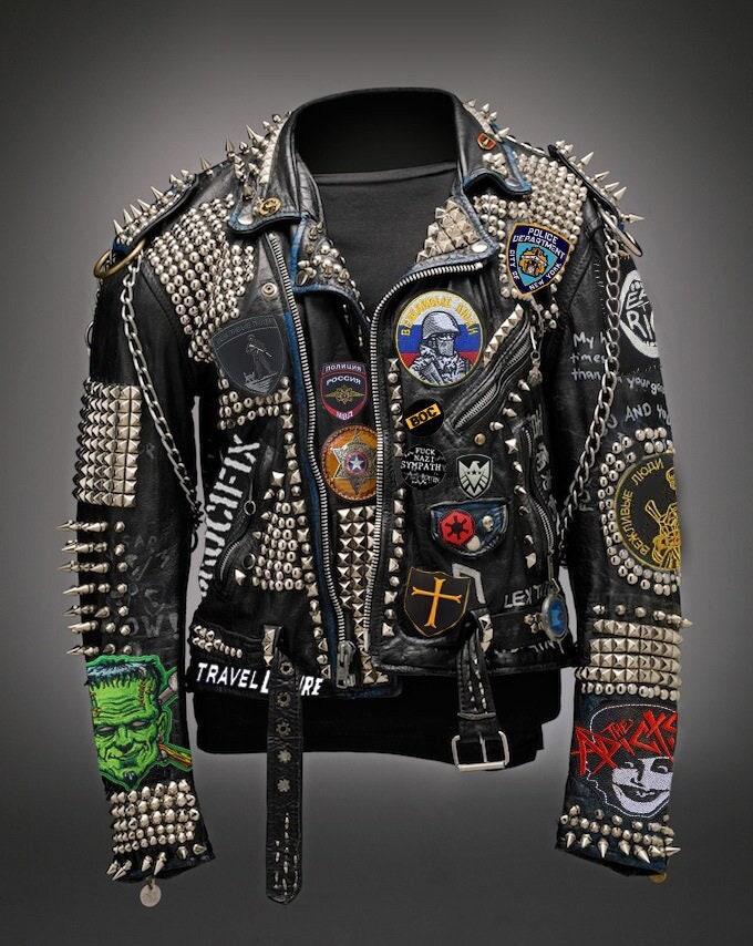 Motor Bike Patches Handmade Men's Jacket, Personalized Pyramid Stud...
