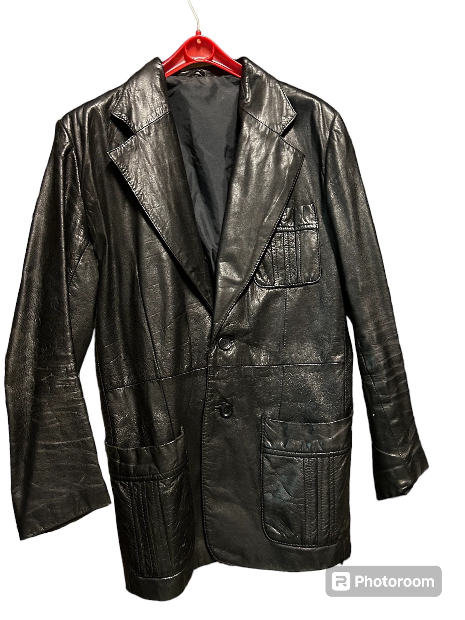 Giacca vintage anni 70 uomo in vera pelle nera taglia M due bottoni spalle 45 cm da ascella a ascell...