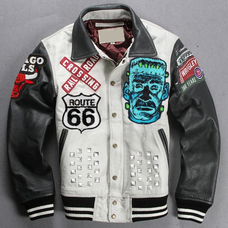 Motor Bike Patches Handmade Men's Jacket, Personalized Pyramid Studs Gothic Jacket, Cowhide Leather ...