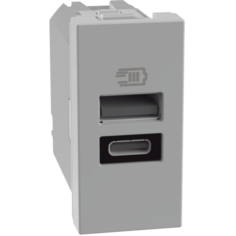 Descrizione generale Caricatore USB BTicino MatixGO con una porta tipo A e una porta tipo C, progett...