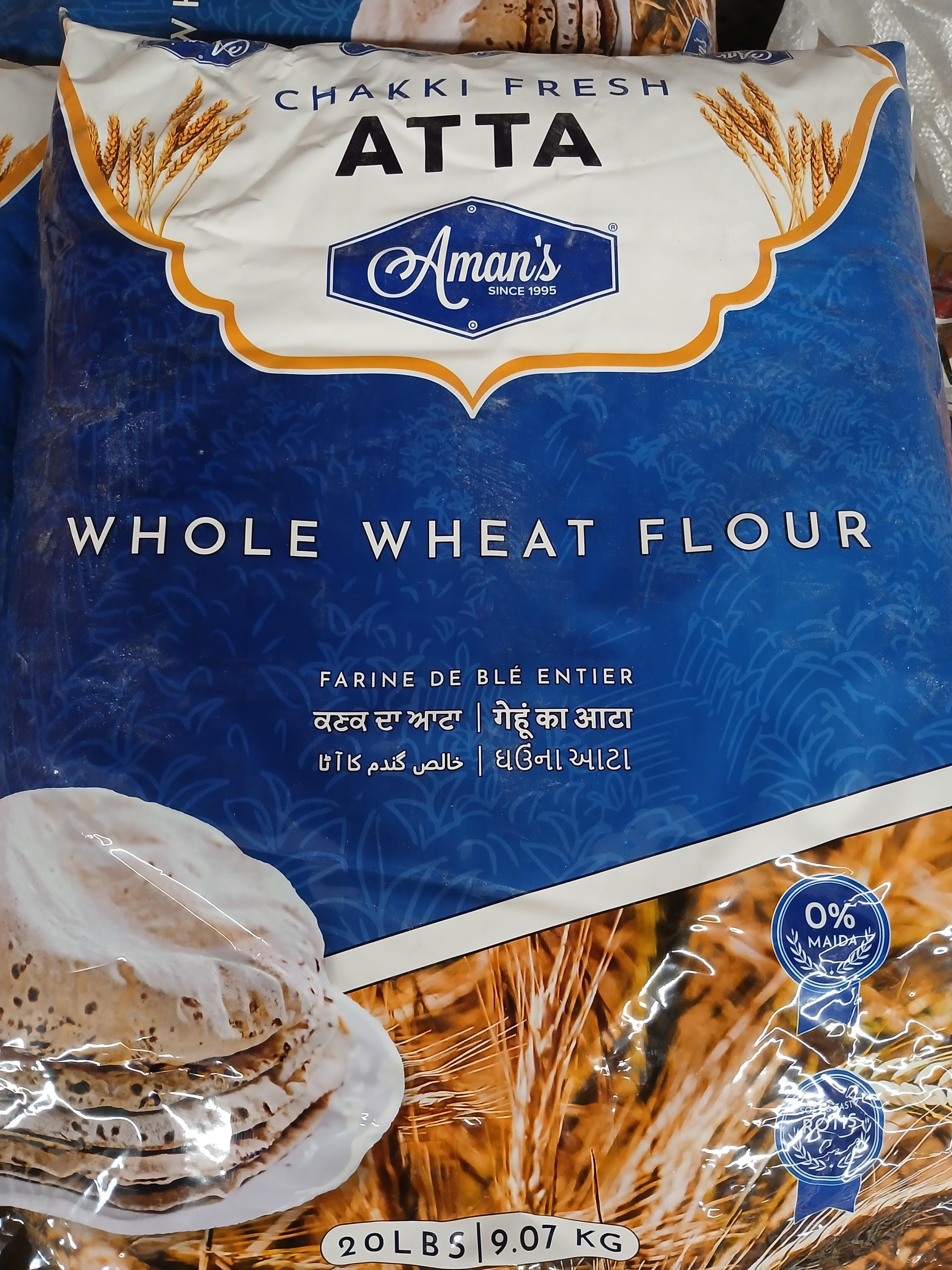 L'atta integrale è una farina integrale macinata finemente, un alimento base nelle case india...