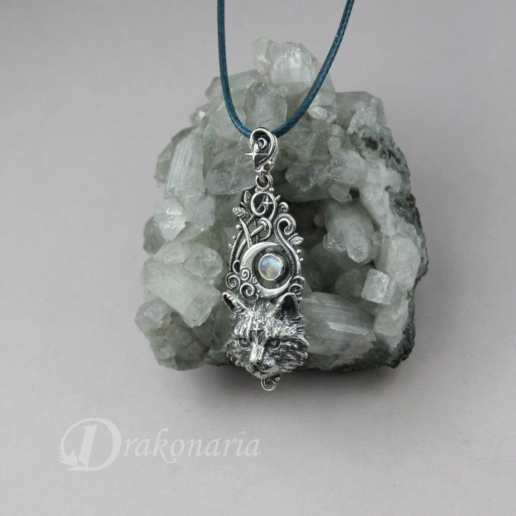 Gatto lunare - gatto in argento sterling, ciondolo a forma di gatto...