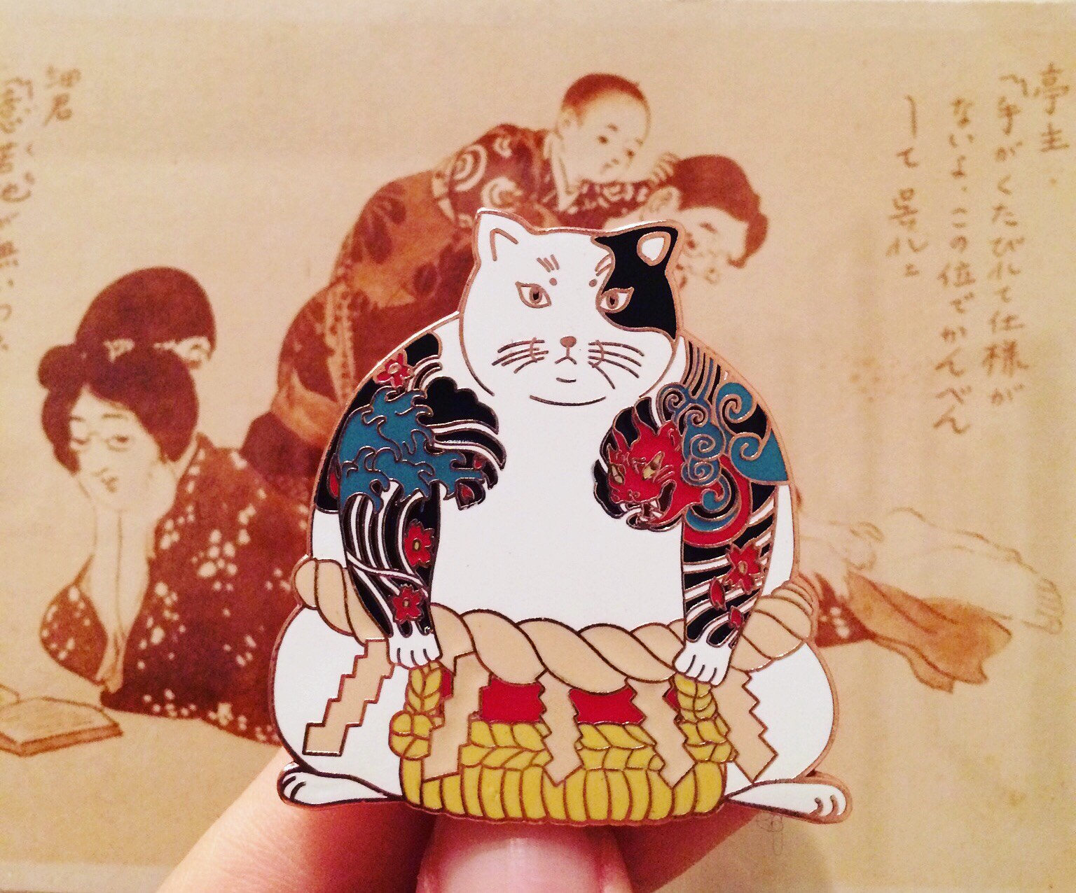 Spilla smaltata con gatto sumo Yakuza bianco_spilla smaltata con ga...