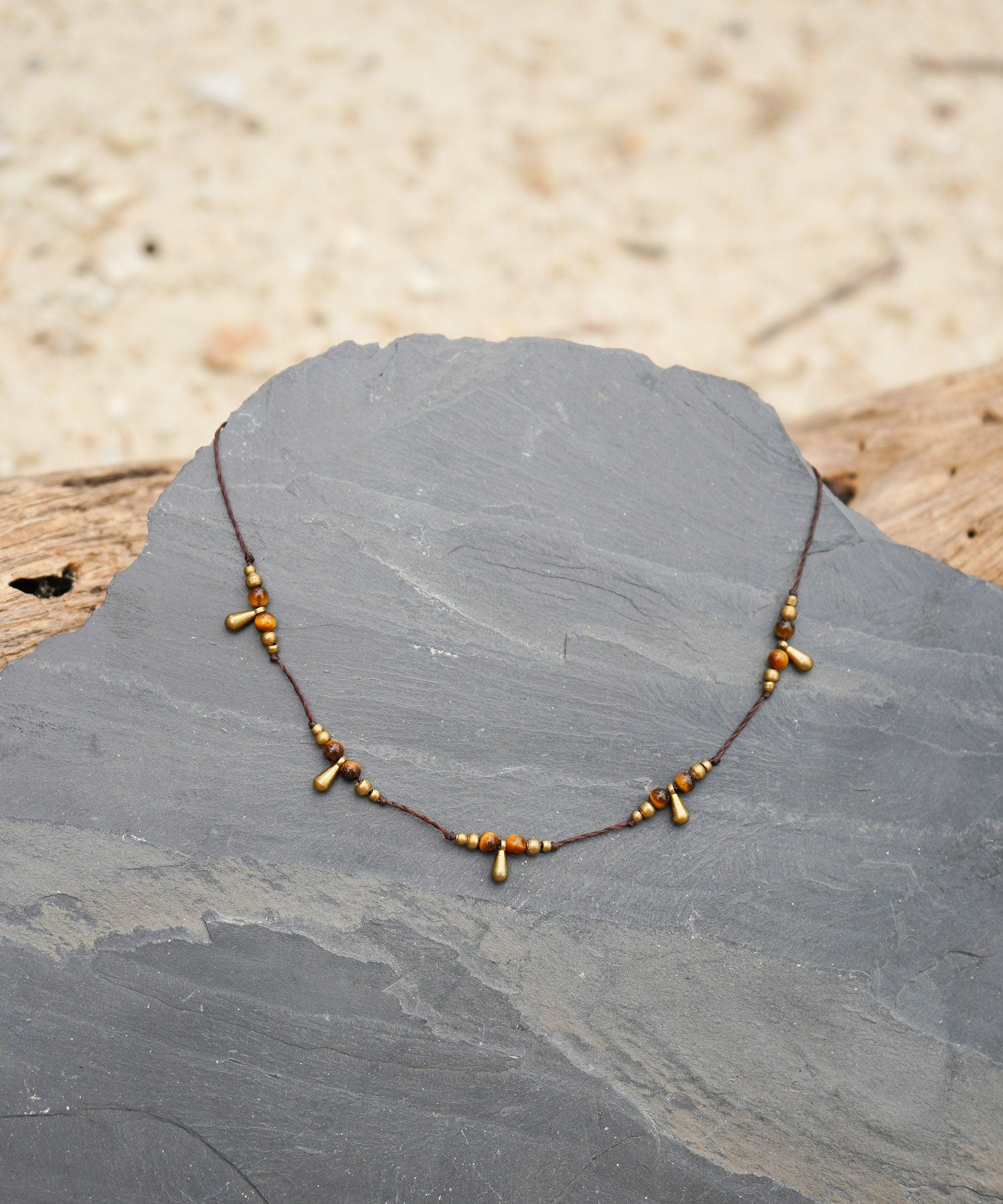"Collana \"Lugana\" macramè occhio di tigre b...