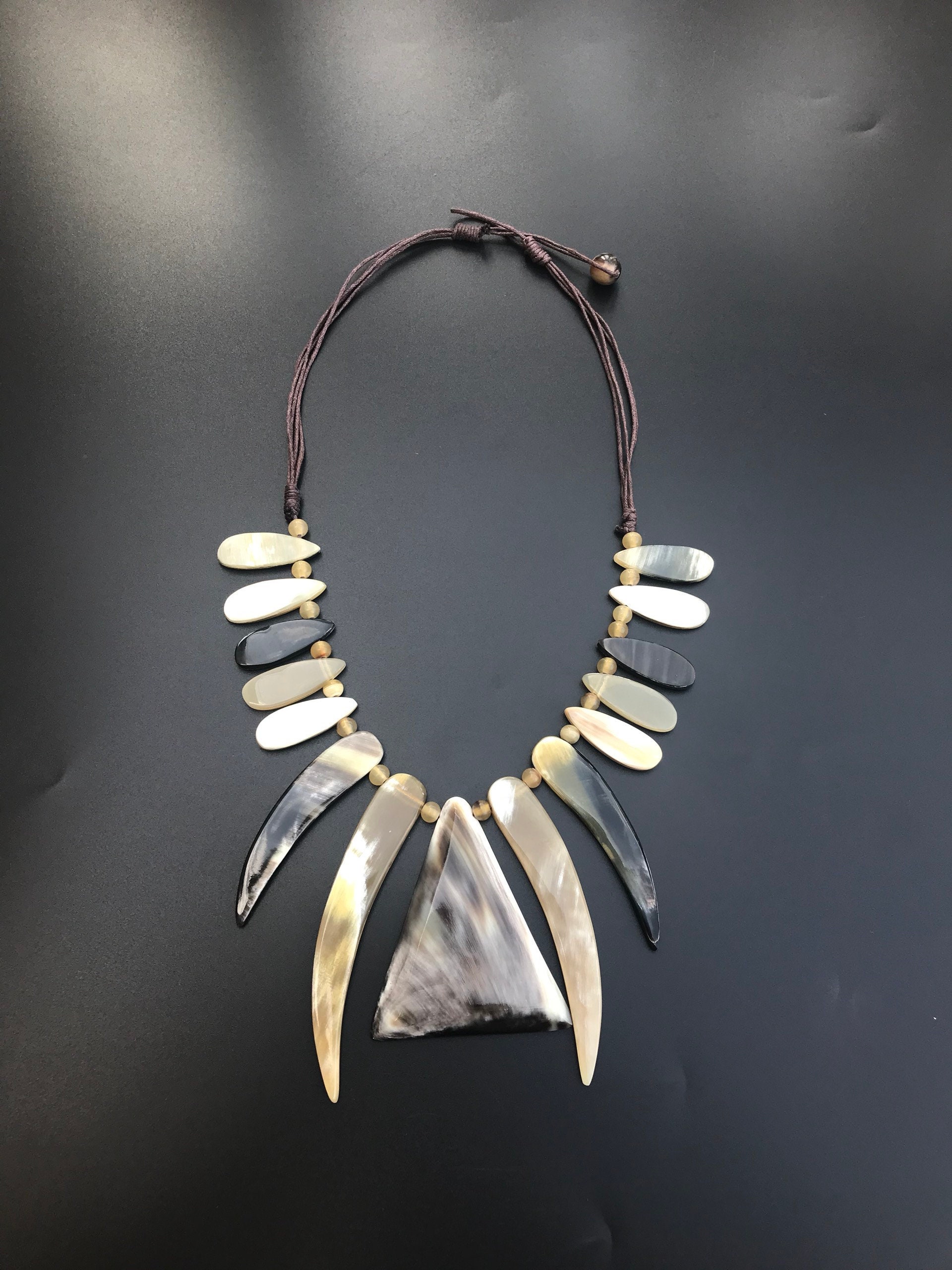 Tribal Collar Bib Chunky horn Necklace, Boho Necklace, Tribal Jewel...