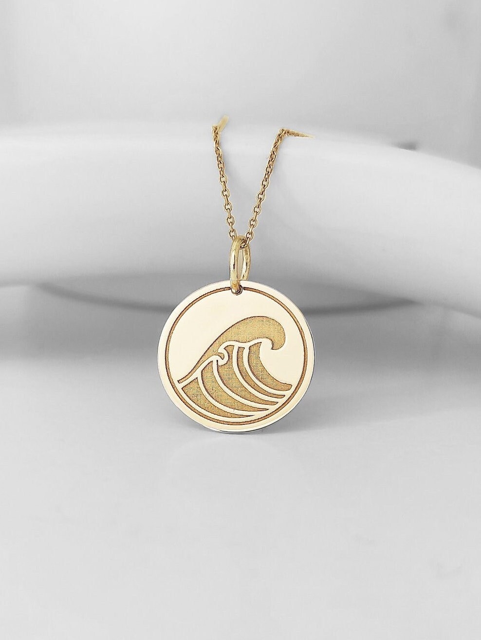 Collana in oro massiccio 14K con onda marina Materiale del ciondolo: Oro massiccio 14k (ORO VERO) Ti...