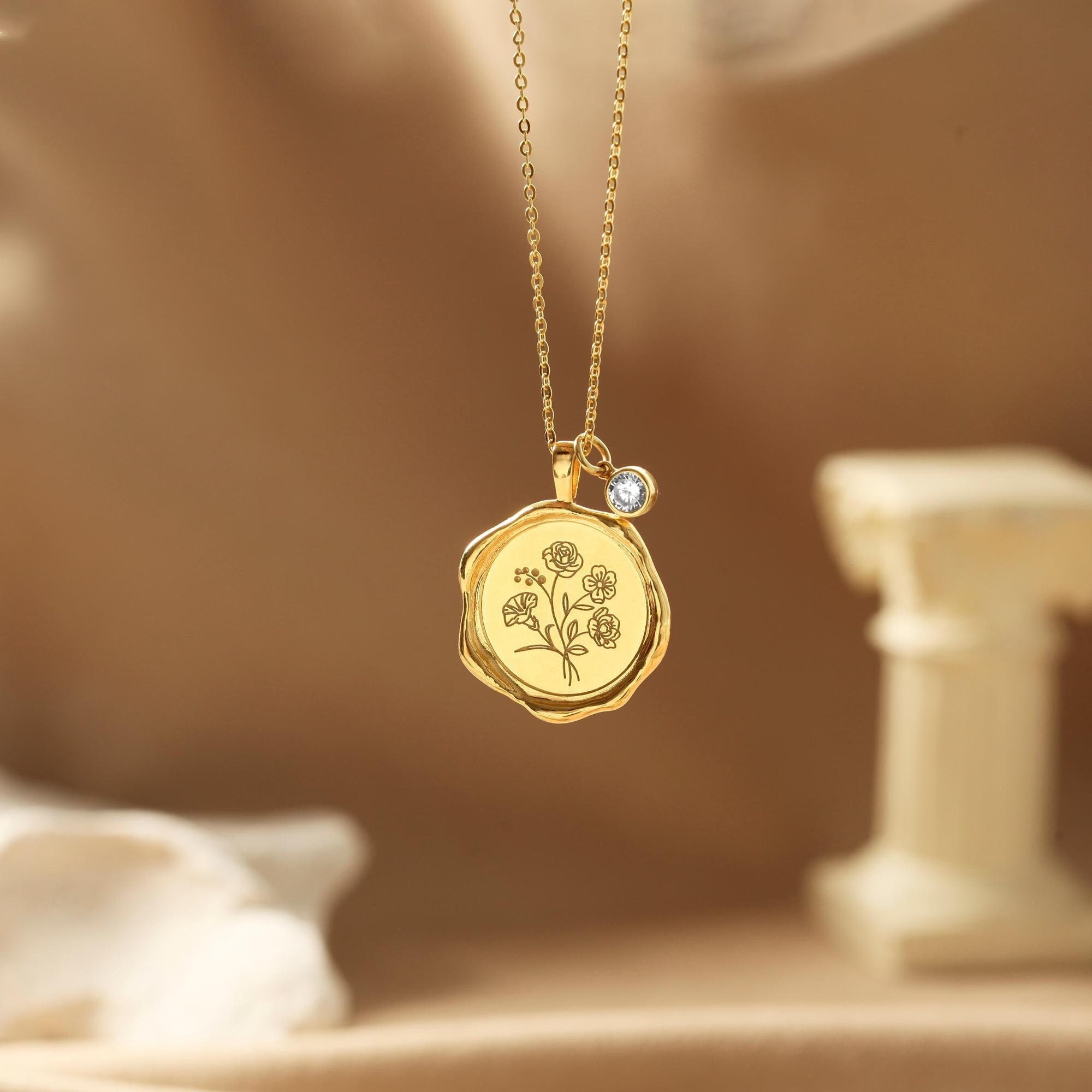 Collana con fiore di nascita in oro, collana con fiore di nascita p...