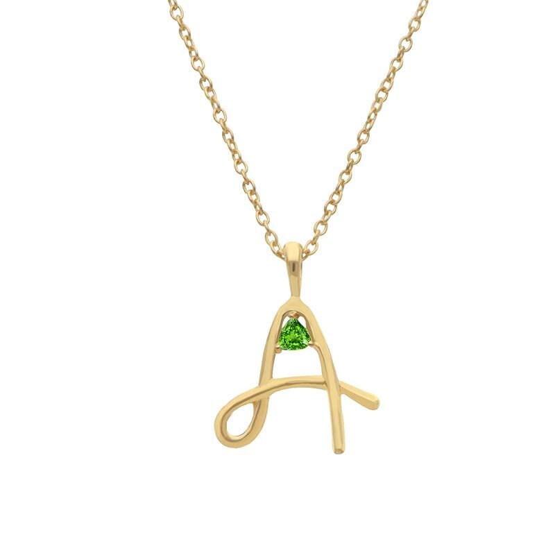 Collana con iniziale A in corsivo in peridoto 14k, ciondolo in oro ...
