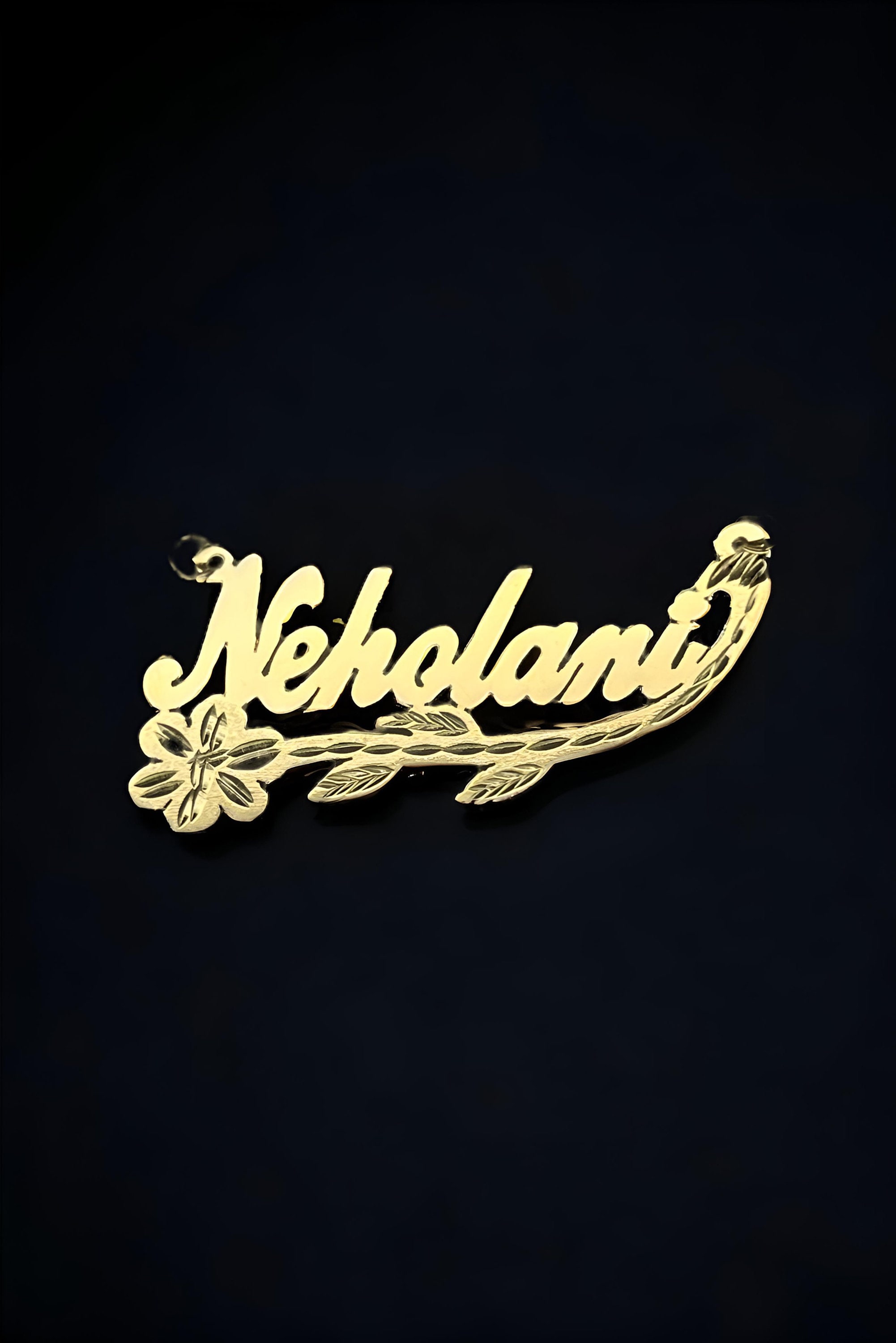 Ciondolo con nome in oro massiccio 14K con fiore -Real 14K Yellow G...