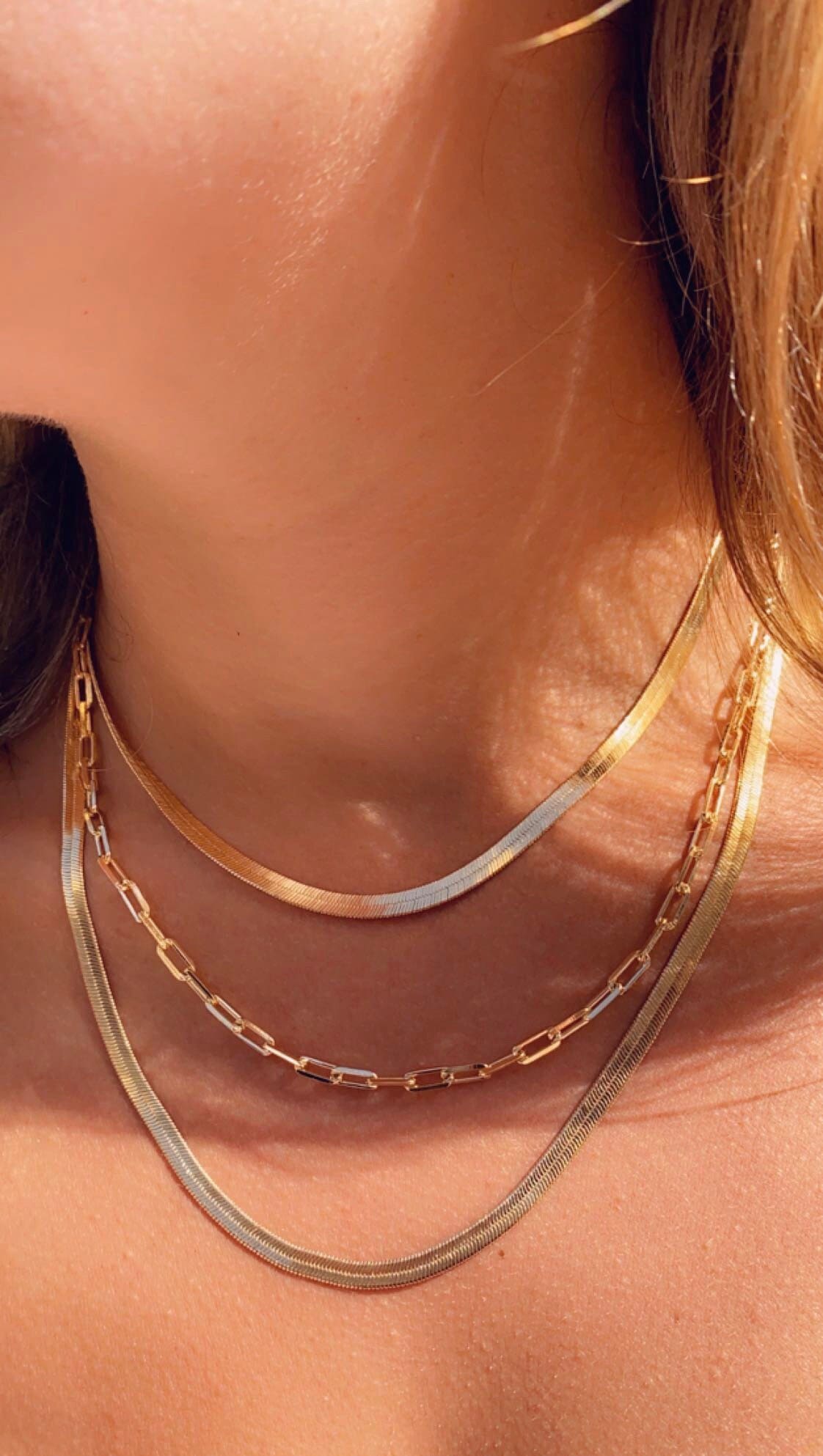 "Doppia catena a spina di pesce, set a spina di pesce in oro, collana a spina di pesce, gioiell...