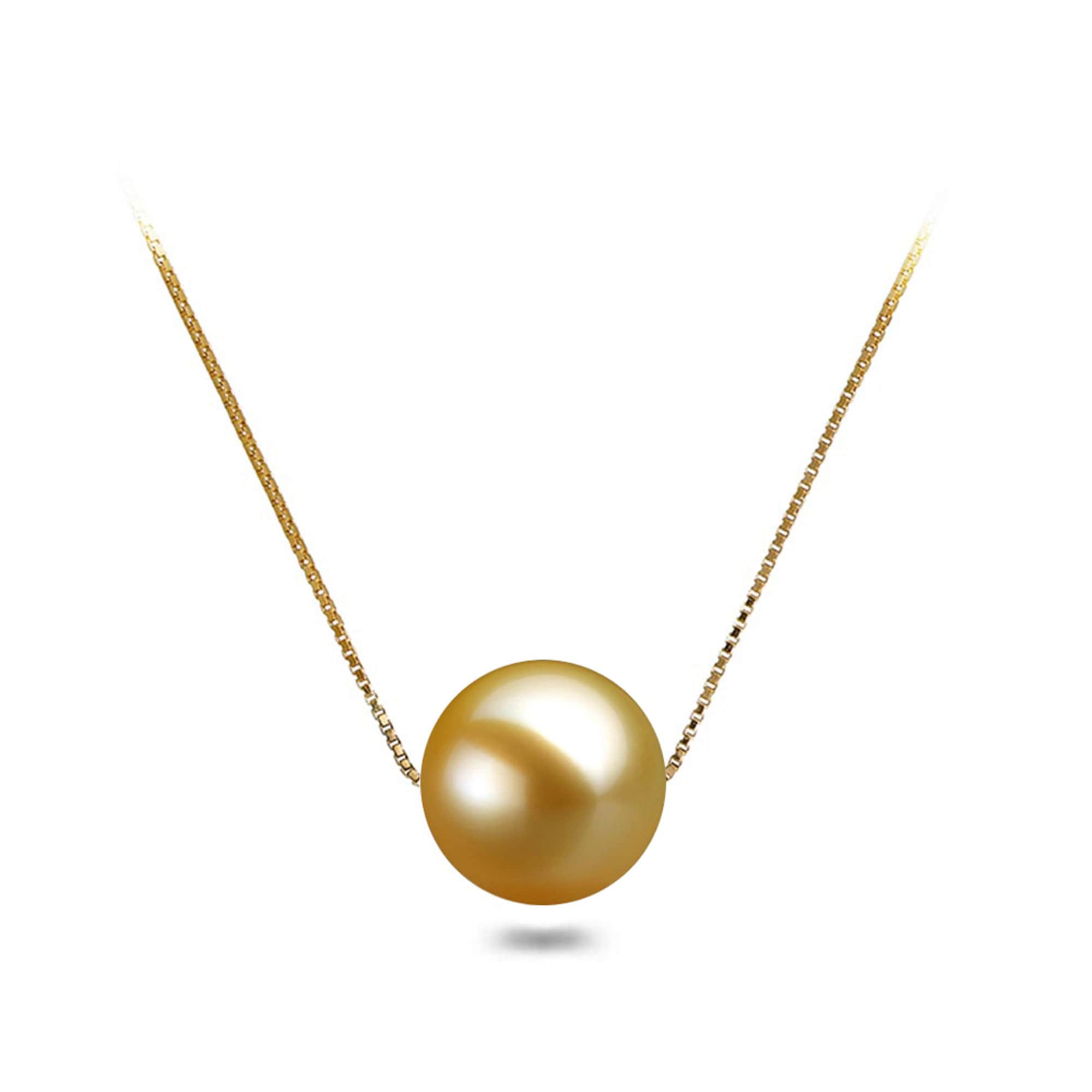 "8.5-12.5mm South Sea Gold Floating Shell Pearl Pendant Neckla...