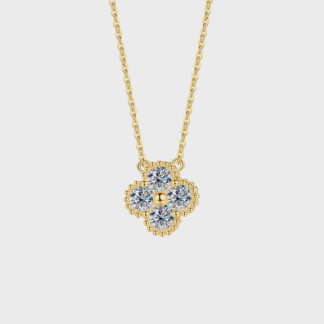 Moissanite Clover Necklace - Certified 925 Sterling Silver Lucky Fl...